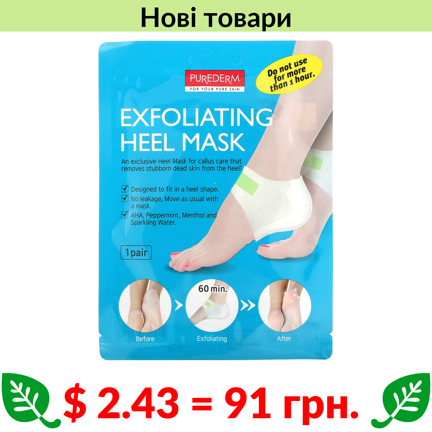 $ 2.43 = 91 грн. ?️ у кошику ?️ Purederm, Exfoliating Heel Mask, 1 Pair