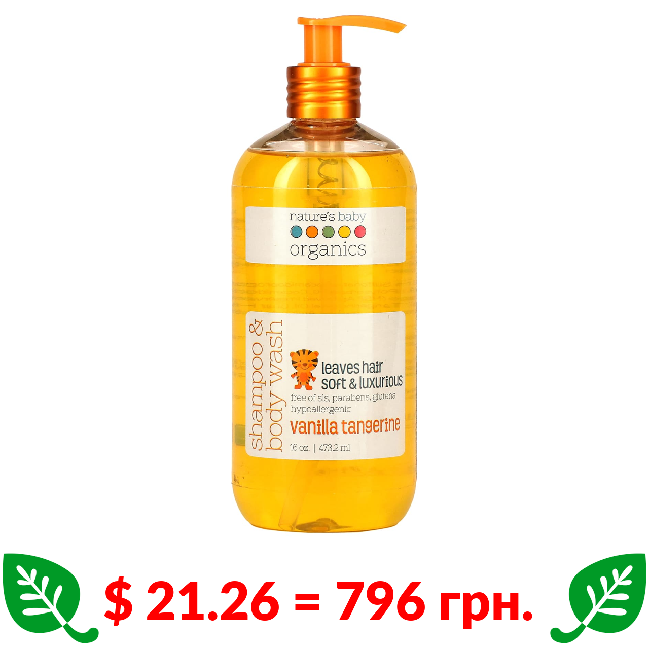 $ 21.26 = 796 грн. Nature’s Baby Organics, Шампунь і засіб для миття тіла, Vanilla Tangerine, 16 унцій (473,2 мл)