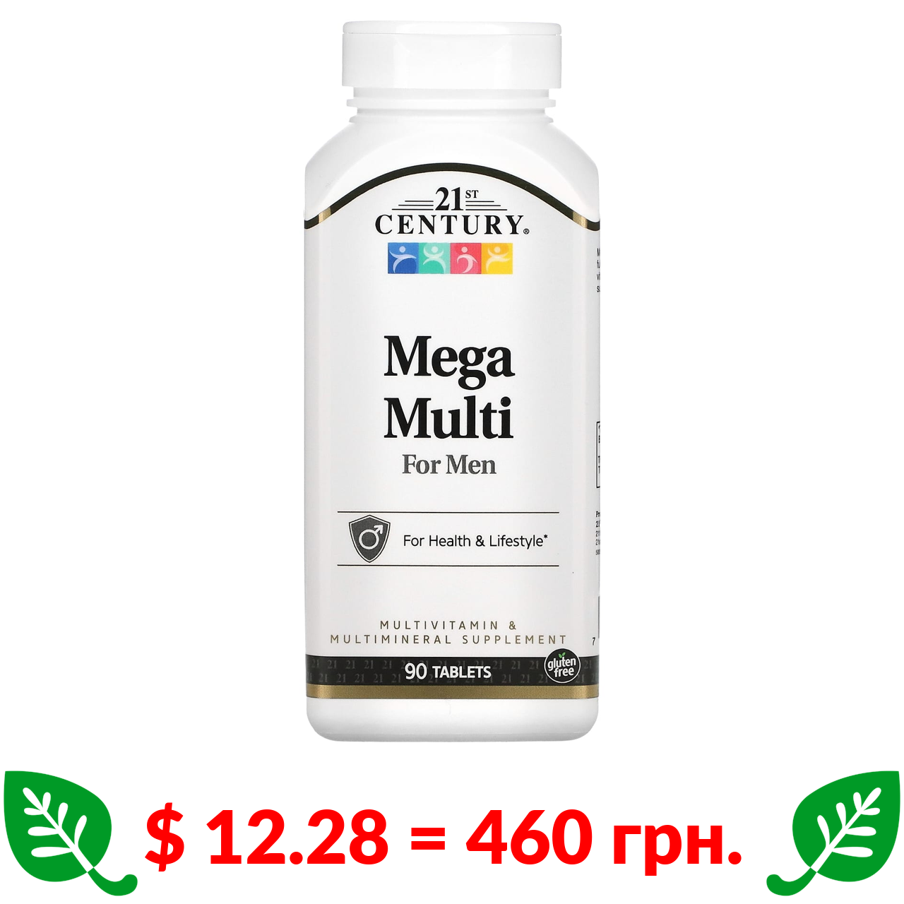 $ 12.28 = 460 грн. 21st Century, Mega Multi, для чоловіків, мультивітаміни та мультимінерали, 90 таблеток