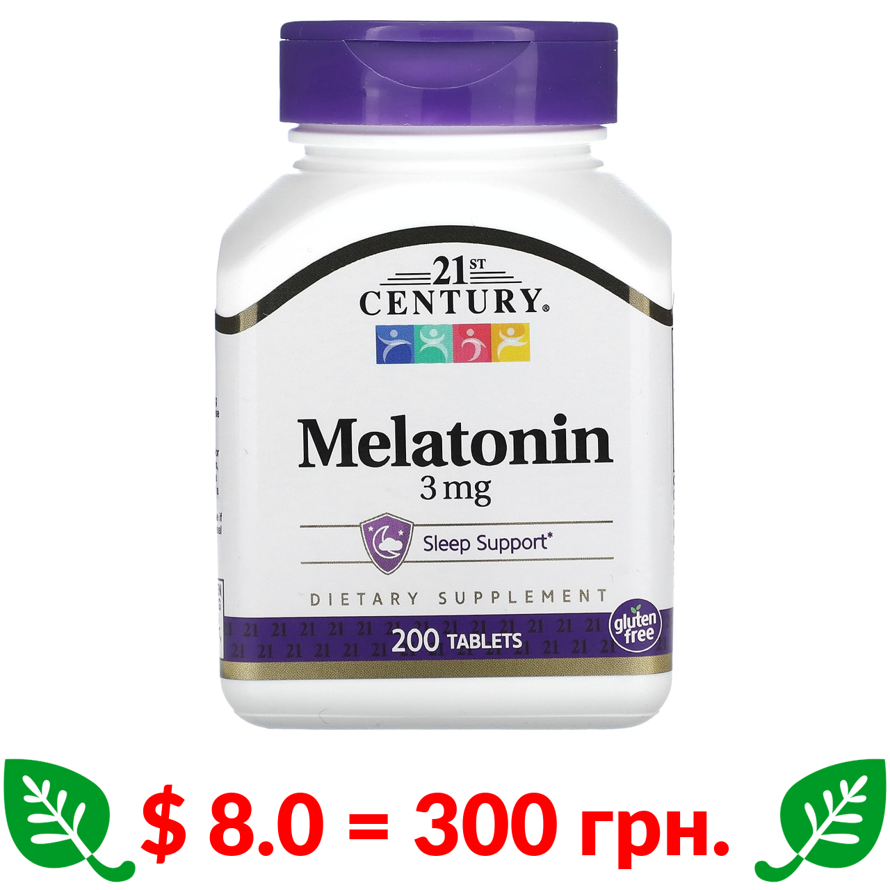 $ 8.0 = 300 грн. 21st Century, мелатонін, 3 мг, 200 таблеток