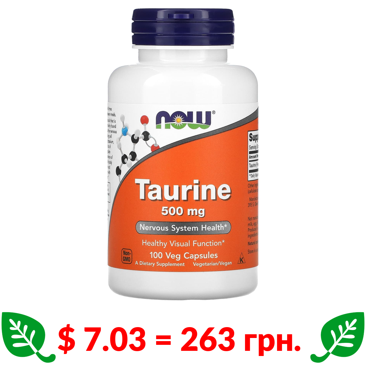 $ 7.03 = 263 грн. Now Foods, Таурин, 500 мг, 100 капсул