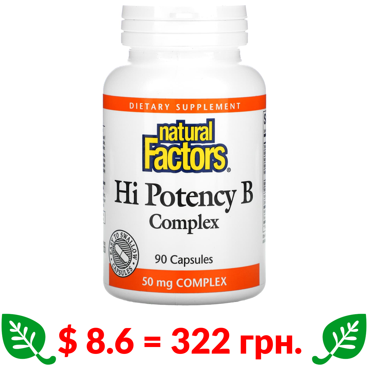 $ 8.6 = 322 грн. Natural Factors, високоефективний комплекс вітамінів групи B, 90 капсул