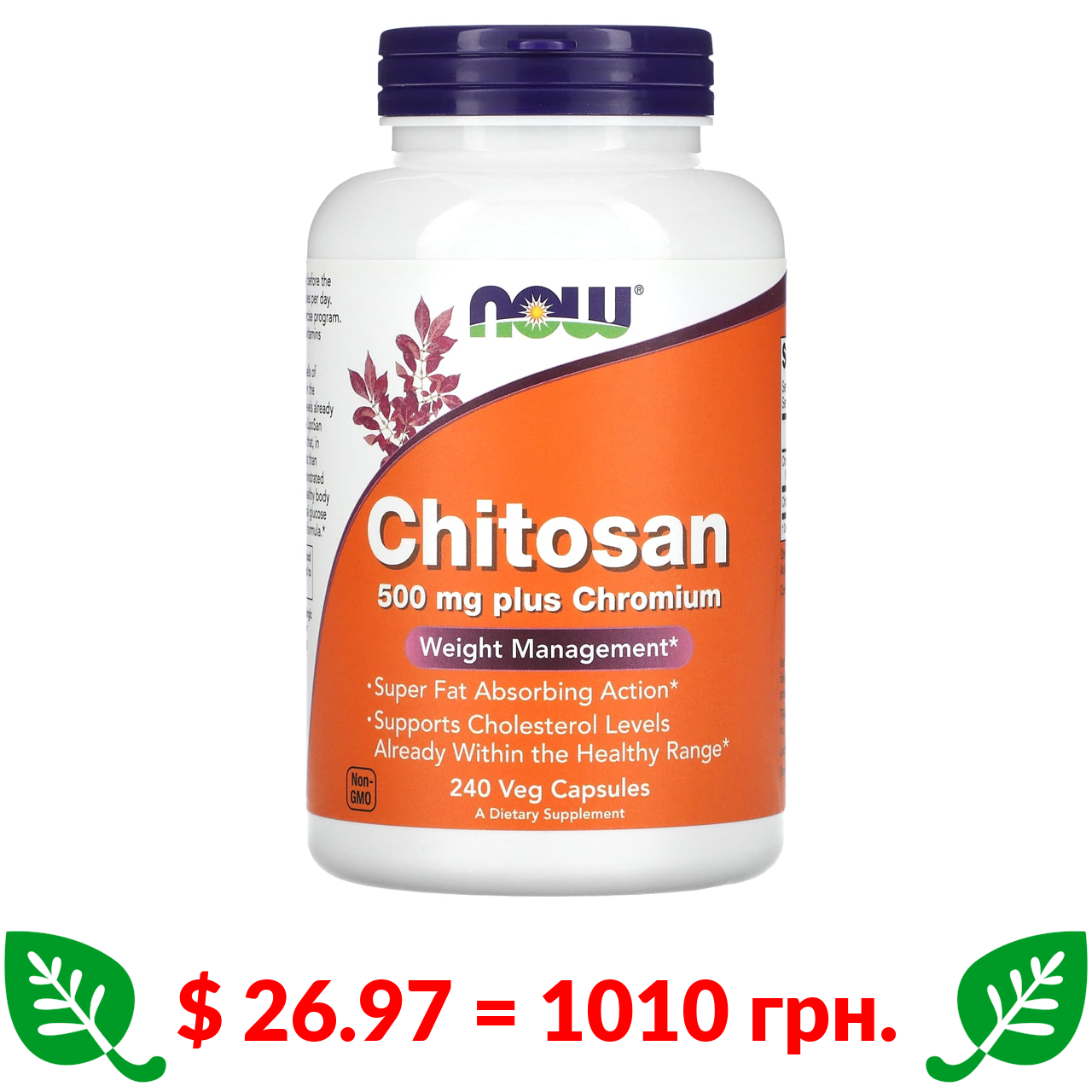 $ 26.97 = 1010 грн. Now Foods, хітозан, 500 мг, 240 вегетаріанських капсул
