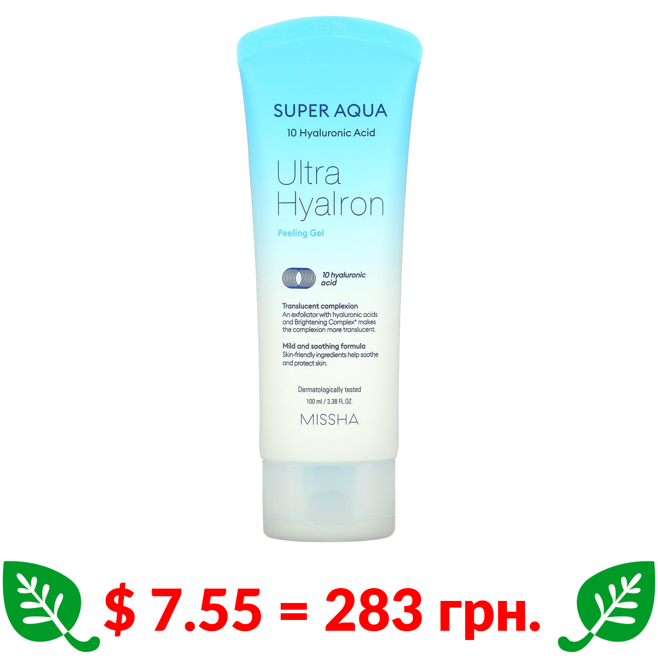 $ 7.55 = 283 грн. ?️ у кошику ?️ Missha, Super Aqua, Ultra Hyalron, гель-пілінг з гіалуроновою кислотою, 100 мл (3,38 рідк. унції)