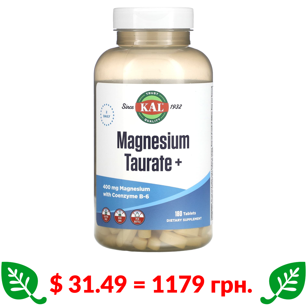 $ 31.49 = 1179 грн. KAL, таурат магнію+, 200 мг, 180 таблеток