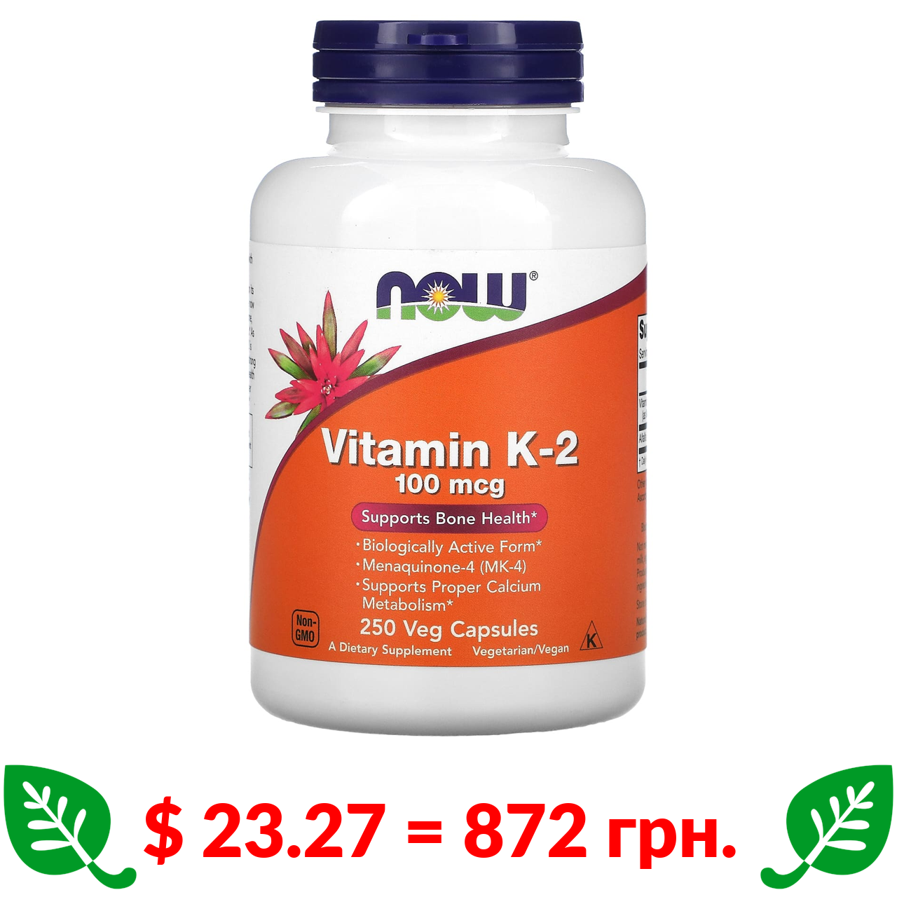 $ 23.27 = 872 грн. Now Foods, вітамін K2, 100 мкг, 250 вегетаріанських капсул