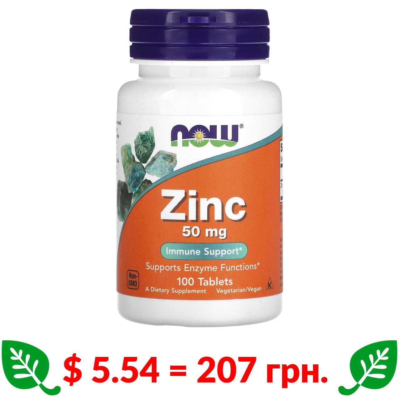 $ 5.54 = 207 грн. Now Foods, Zinc, 50 mg, 100 Tablets
