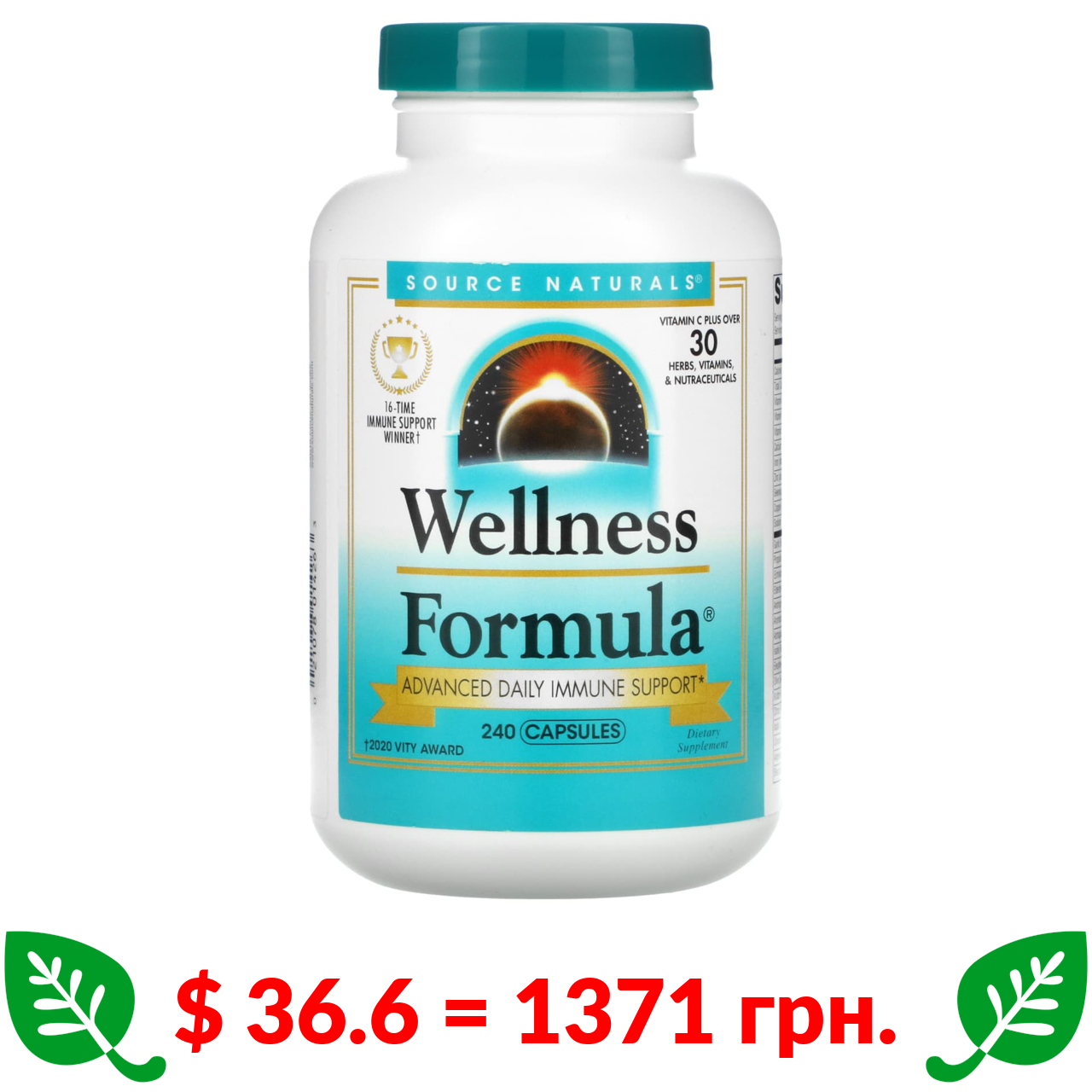 $ 36.6 = 1371 грн. Source Naturals, Wellness Formula, вдосконалена щоденна підтримка імунітету, 240 капсул