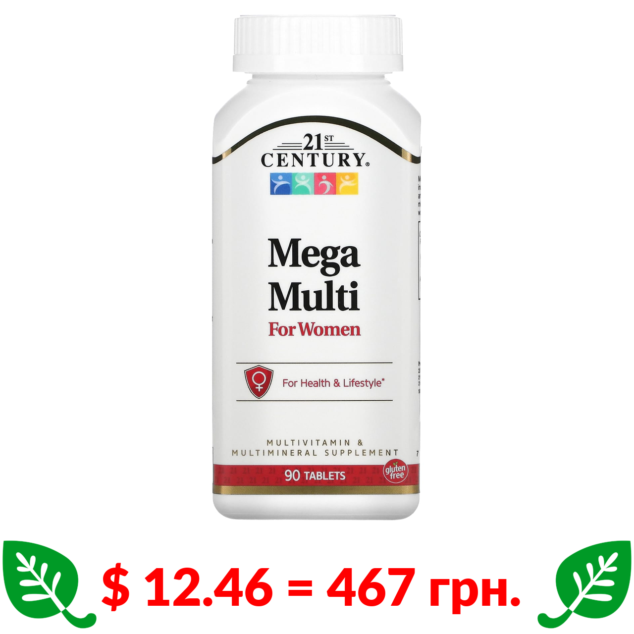 $ 12.46 = 467 грн. 21st Century, Mega Multi, для жінок, 90 таблеток