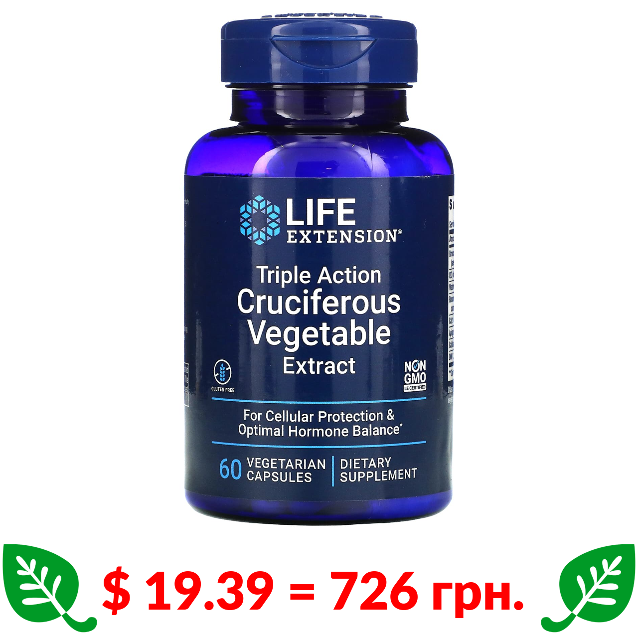 $ 19.39 = 726 грн. Life Extension, екстракт хрестоцвітих овочів потрійної дії, 60 вегетаріанських капсул