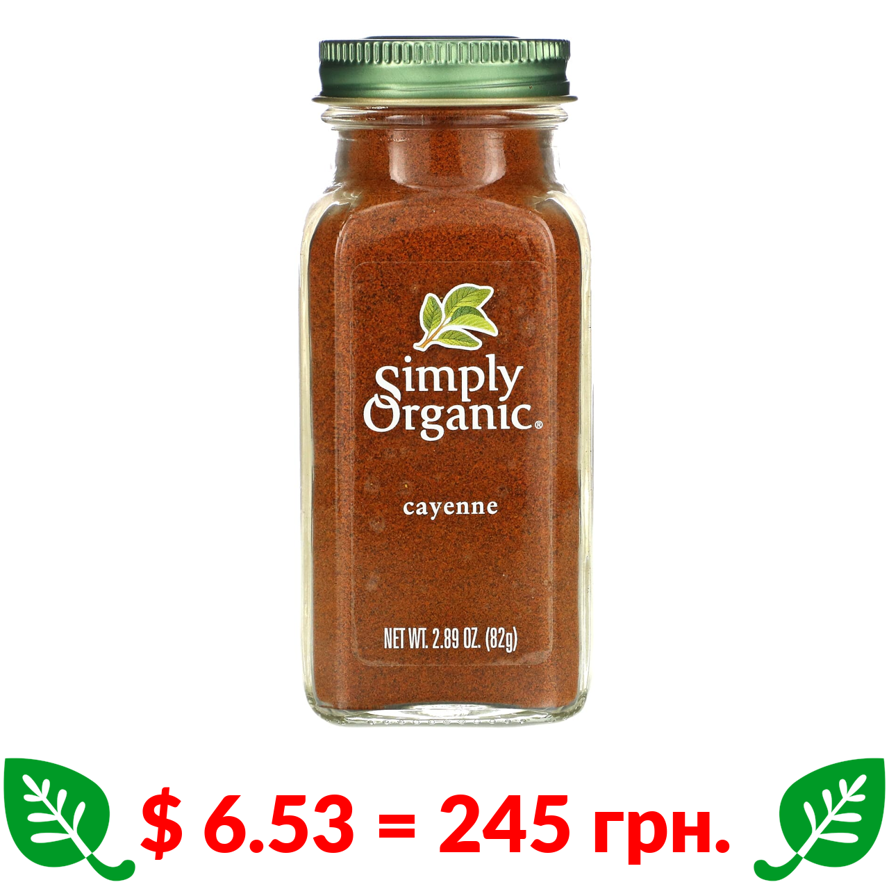 $ 6.53 = 245 грн. Simply Organic, каєнський перець, 82 г (2,89 унції)