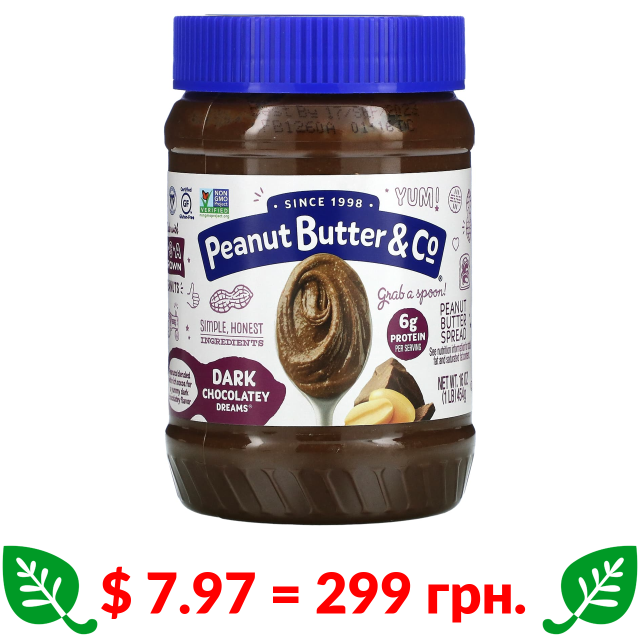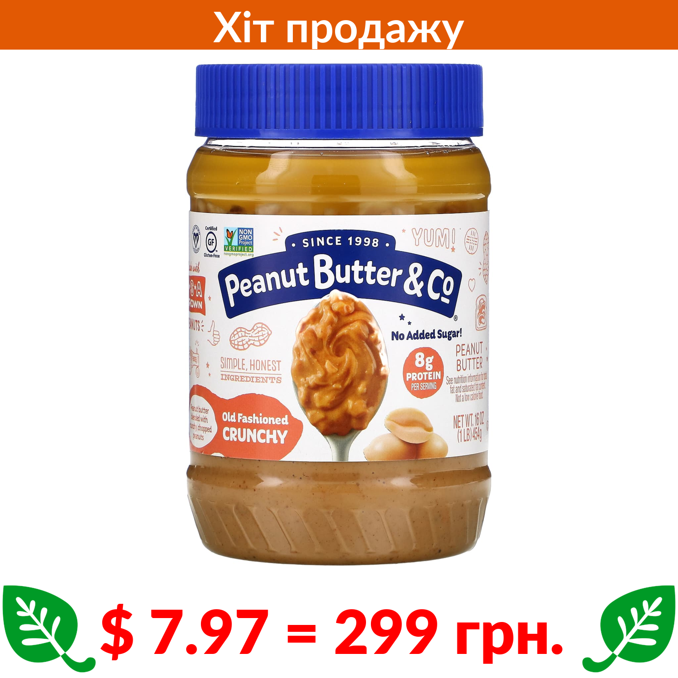 $ 7.97 = 299 грн. Peanut Butter & Co., арахісова паста, класичний рецепт, 454 г (16 унцій)