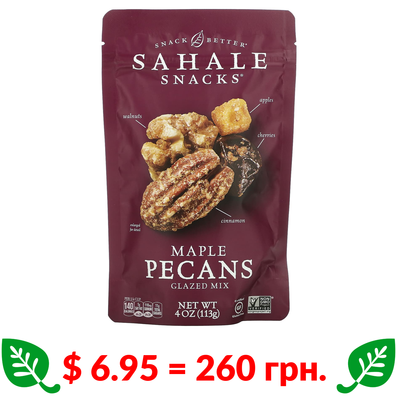 $ 6.95 = 260 грн. Sahale Snacks, глазурована суміш із горіхами пекан і кленовим сиропом, 113 г (4 унції)