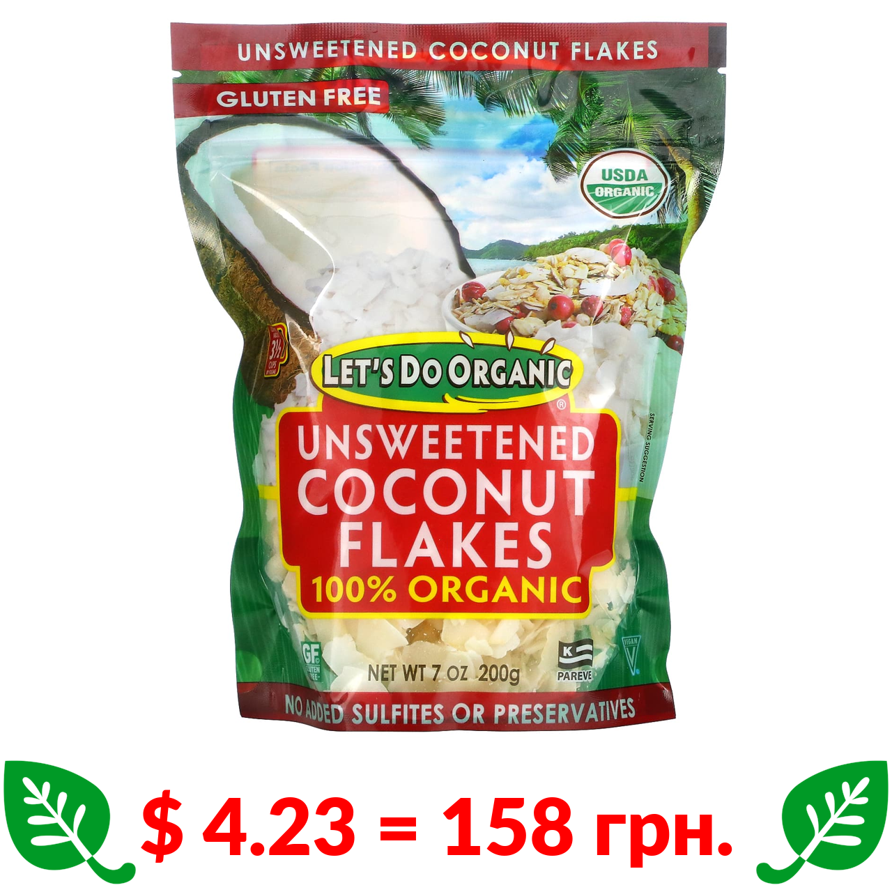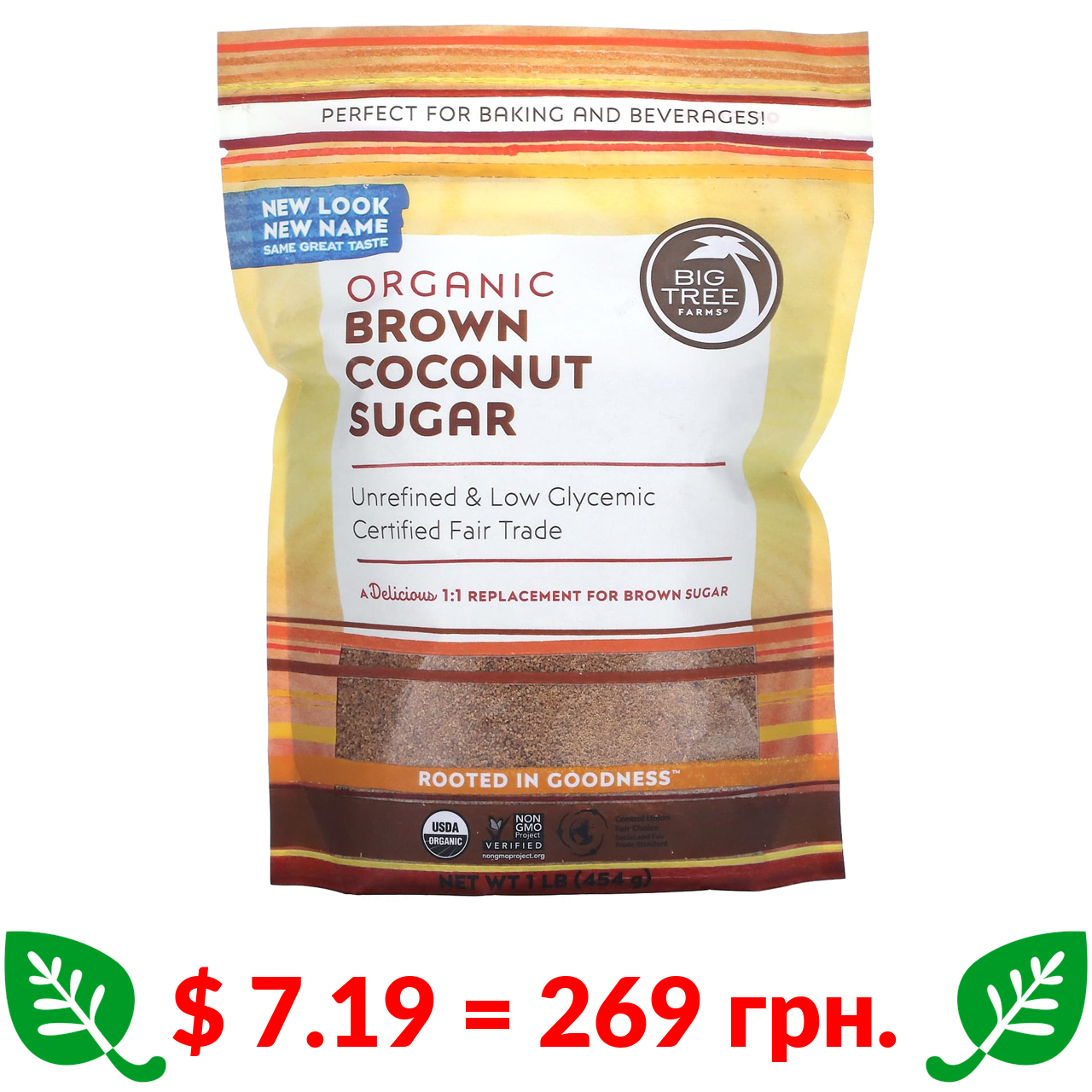 $ 7.19 = 269 грн. Big Tree Farms, органічний коричневий кокосовий цукор, 454 г (1 фунт)