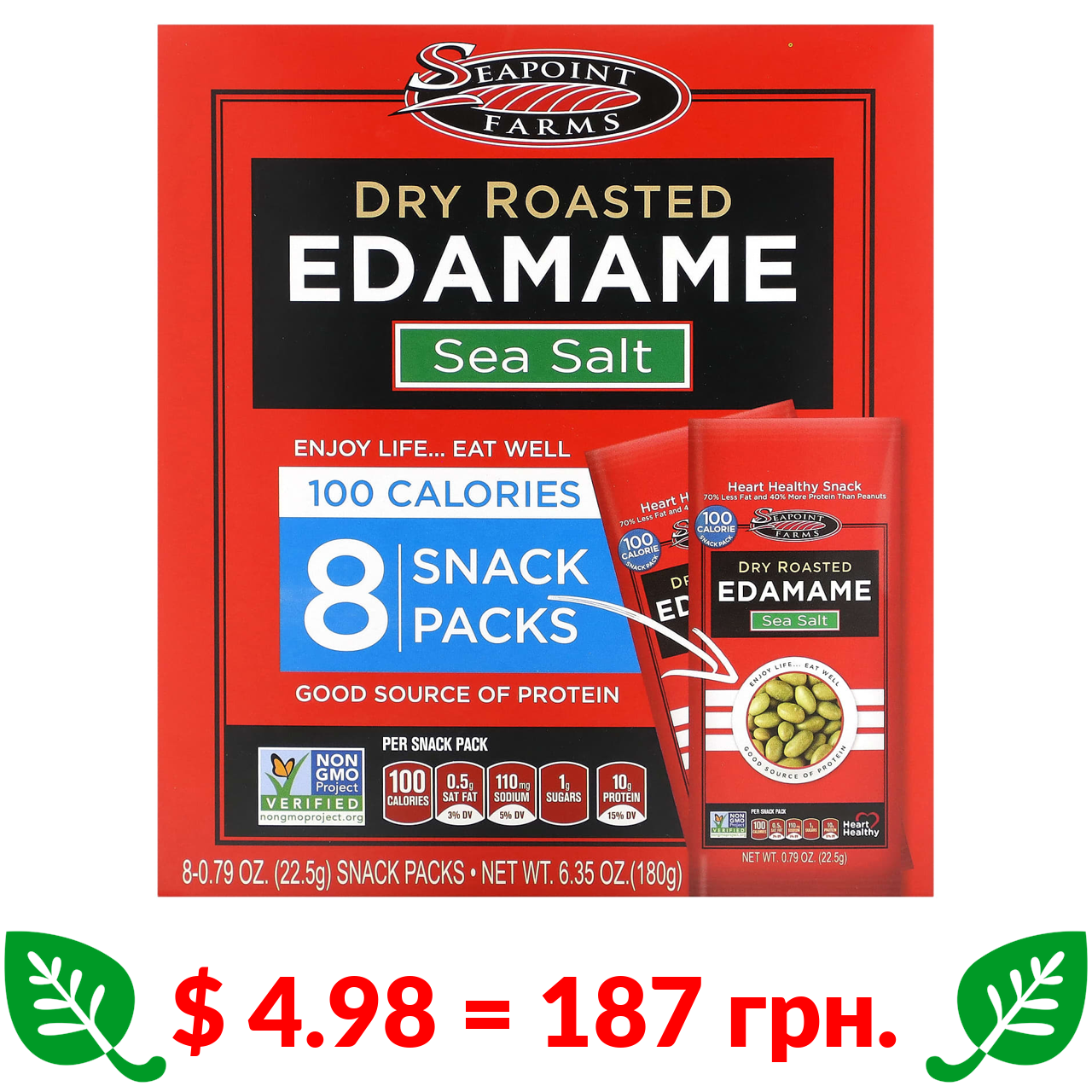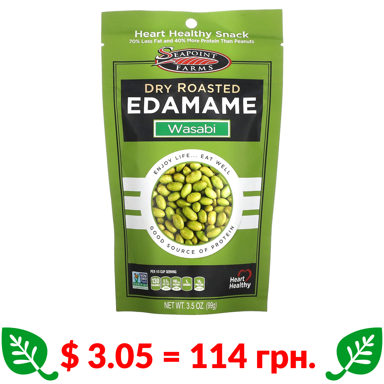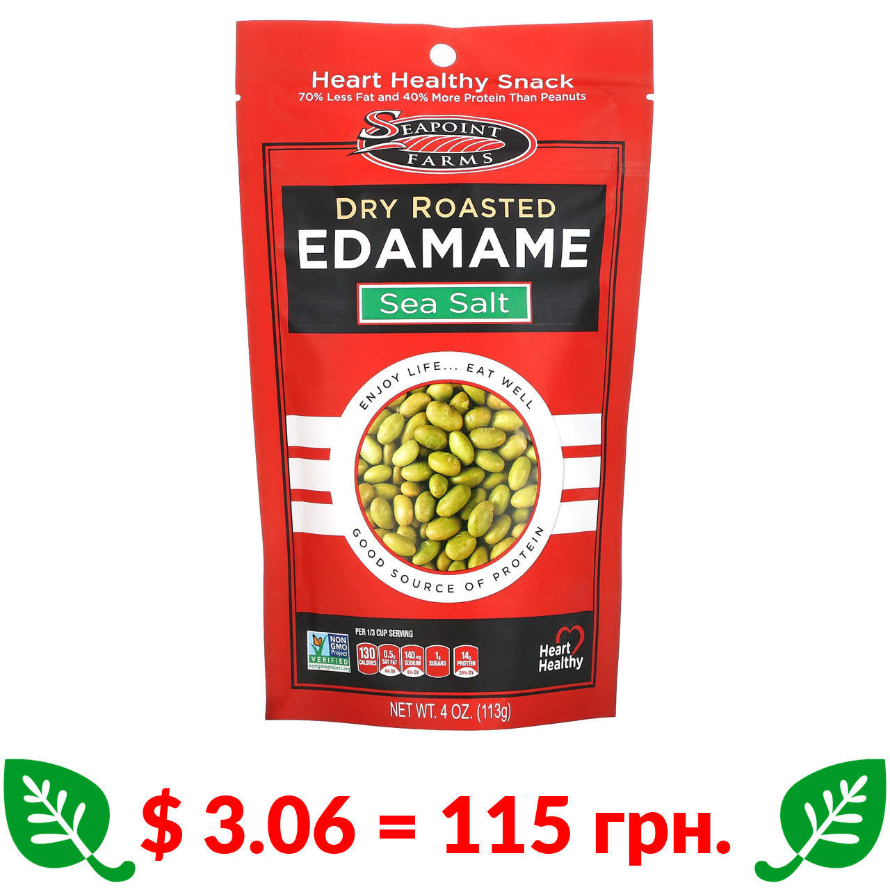 $ 3.06 = 115 грн. Seapoint Farms, сушена обсмажена соя з морською сіллю, 113 г (4 унції)