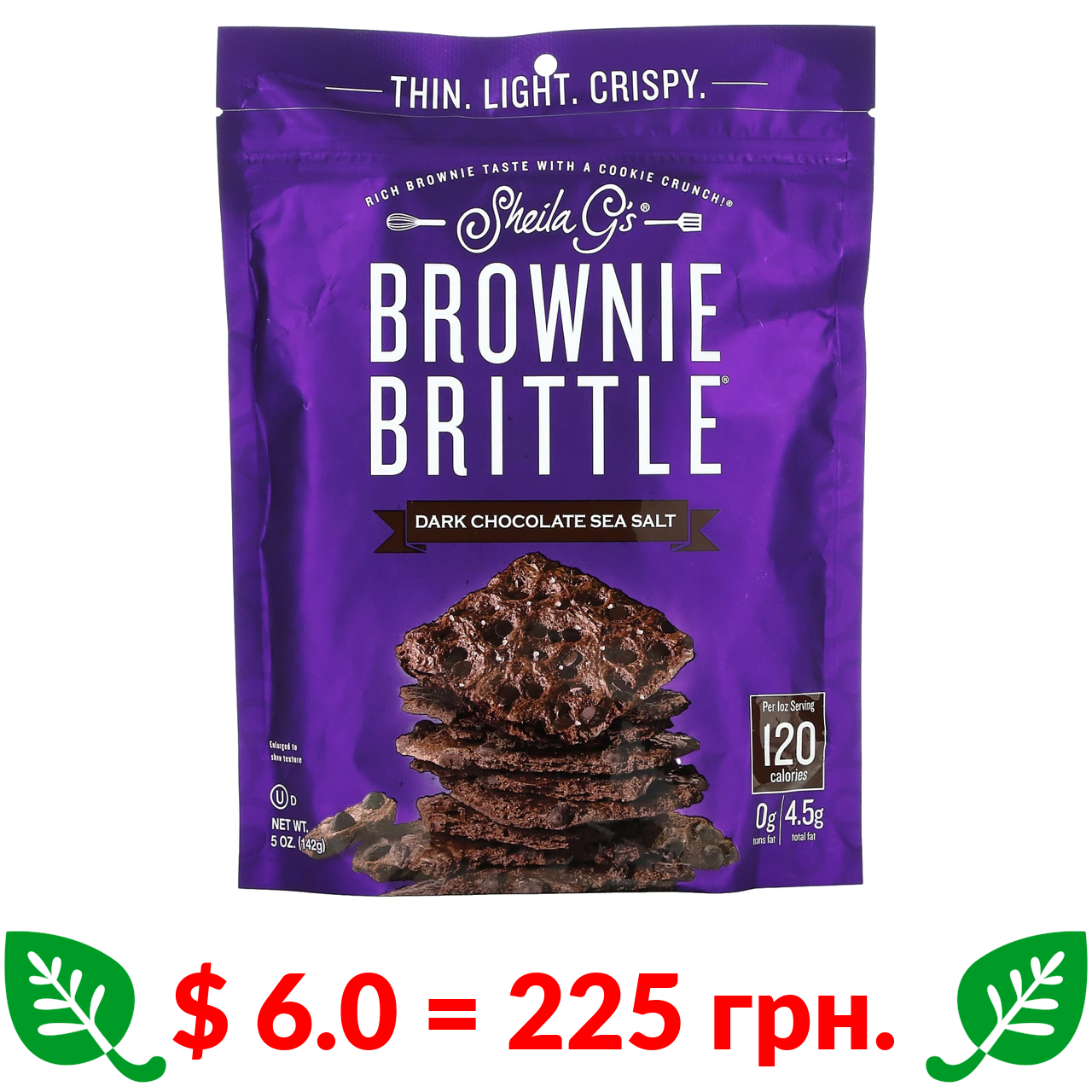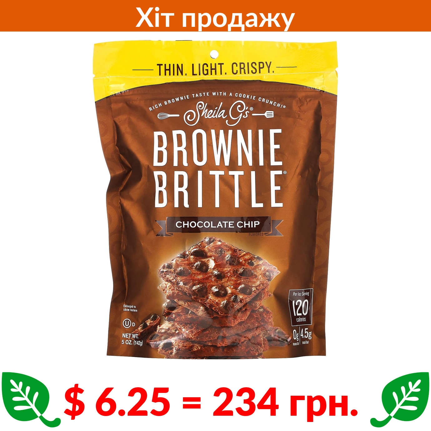 $ 6.25 = 234 грн. Sheila G’s, Brownie Brittle, шоколадна крихта, 5 унцій (142 г)