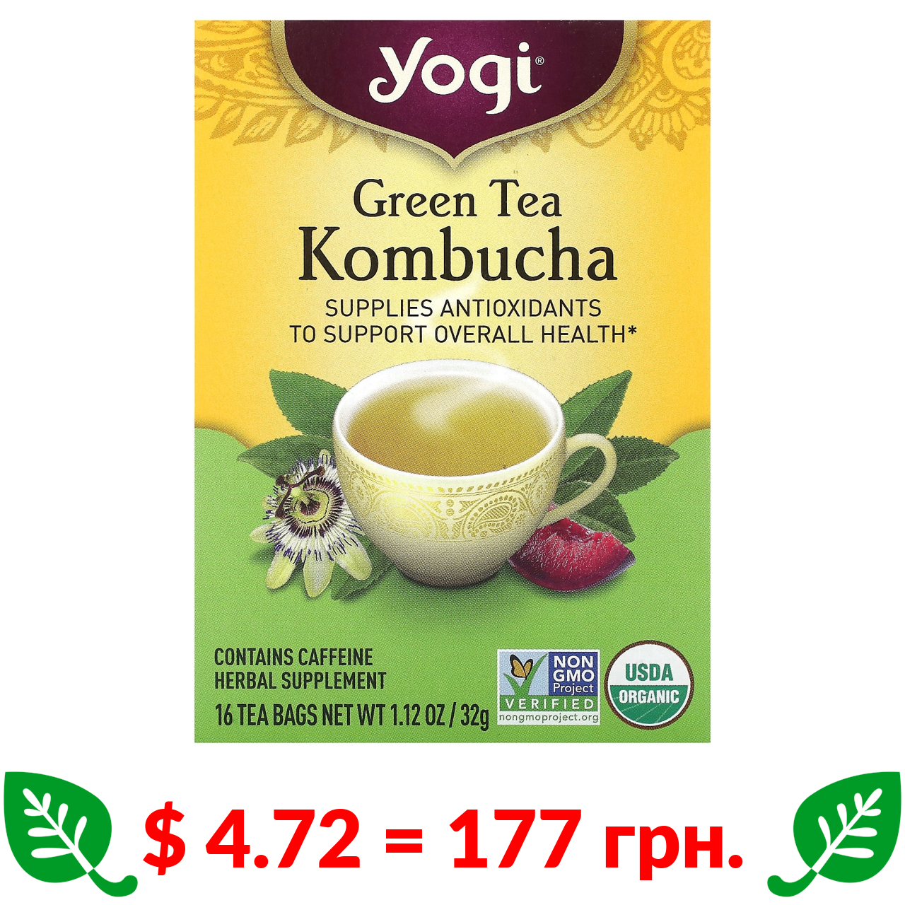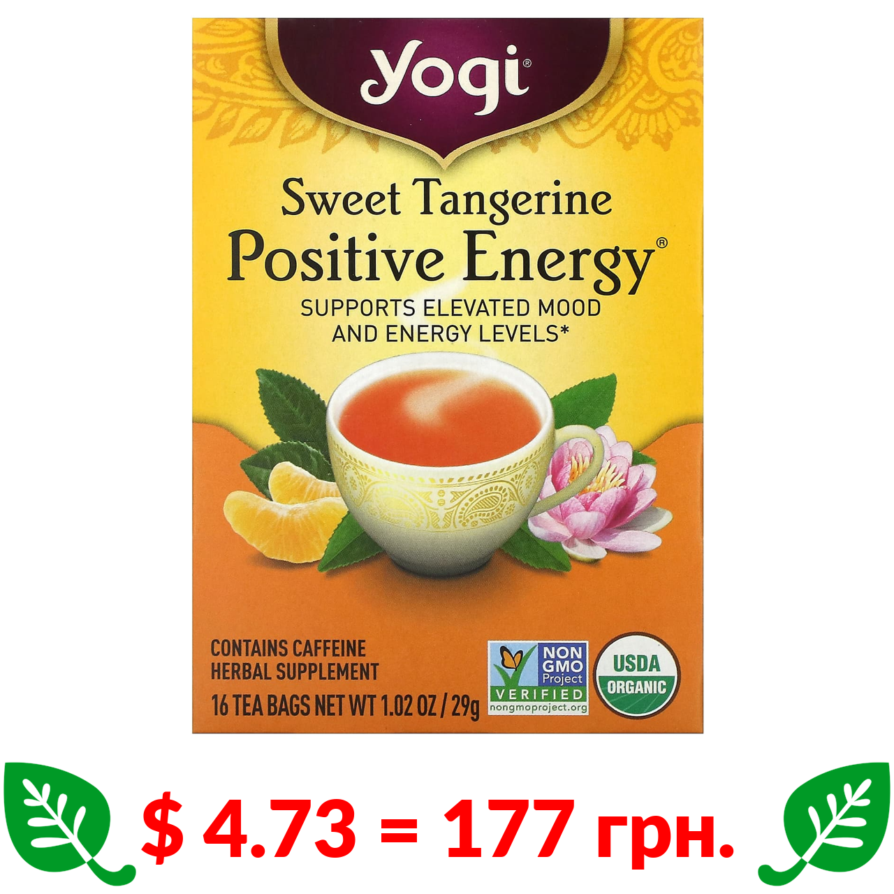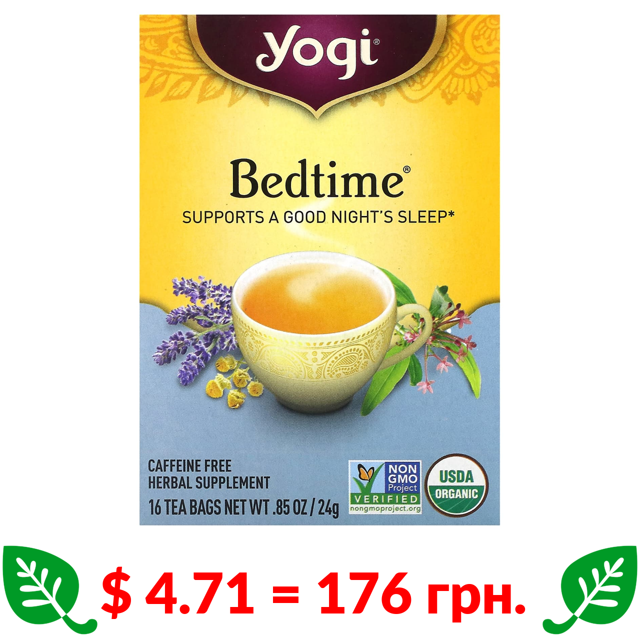 $ 4.71 = 176 грн. Yogi Tea, заспокійливий чай для вживання перед сном, без кофеїну, 16 чайних пакетиків, 24 г (85 унції)