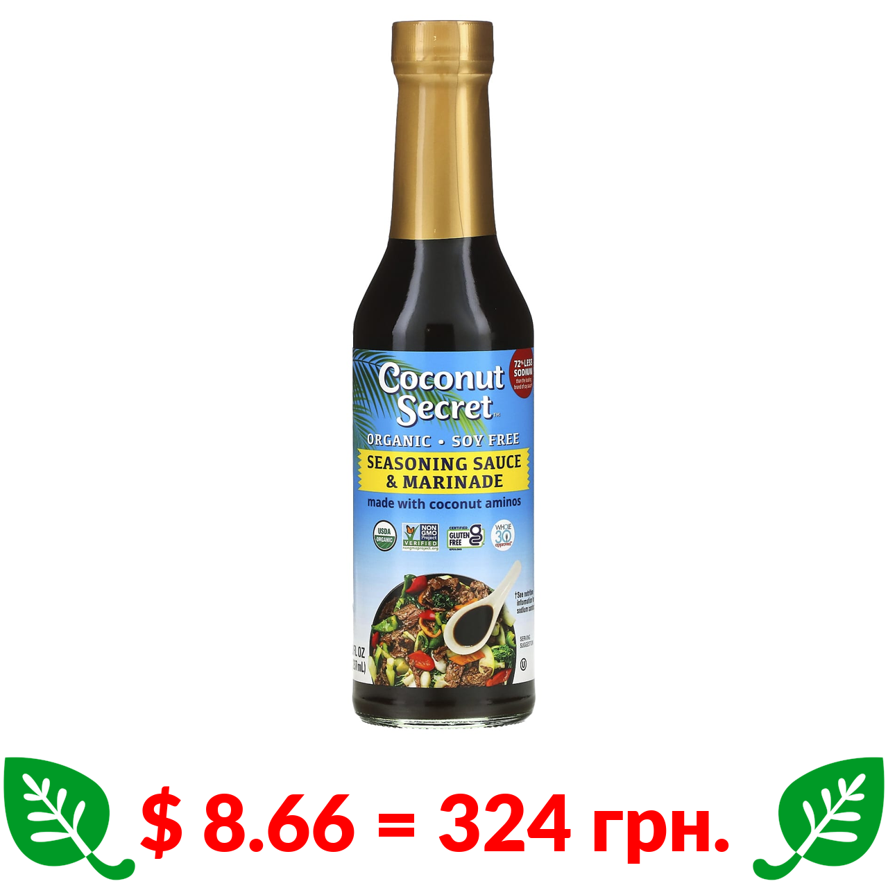 $ 8.66 = 324 грн. Coconut Secret, Coconut Aminos, органічний кокосовий соус без сої, 237 мл (8 рідк. унцій)