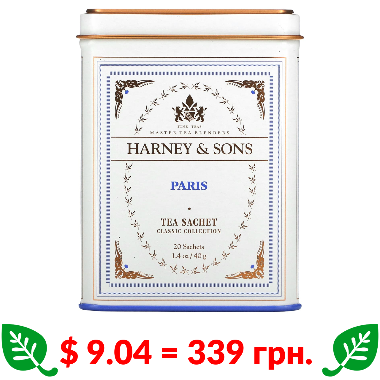 $ 9.04 = 339 грн. Harney & Sons, Fine Teas, «Паризький чай», 20 пакетиків, 40 г (1,4 унцій)