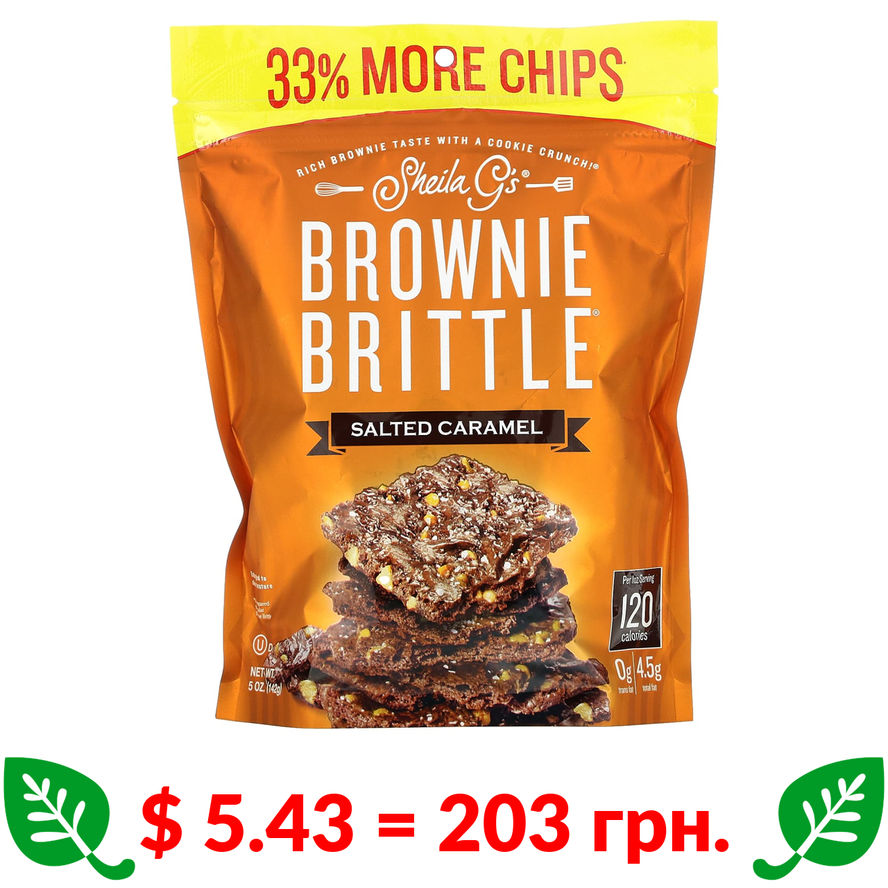 $ 5.43 = 203 грн. Sheila G’s, Brownie Brittle, солона карамель, 5 унцій (142 г)