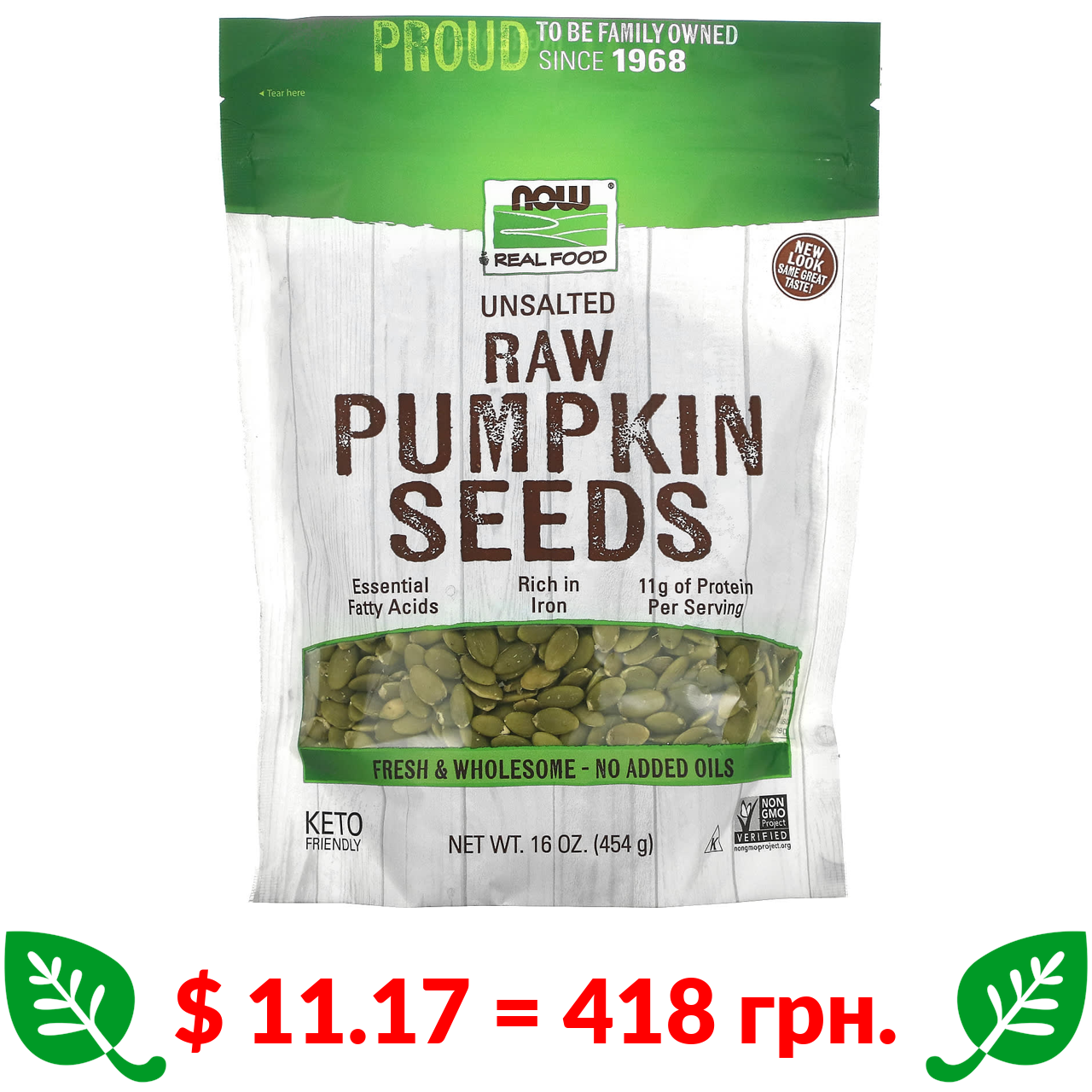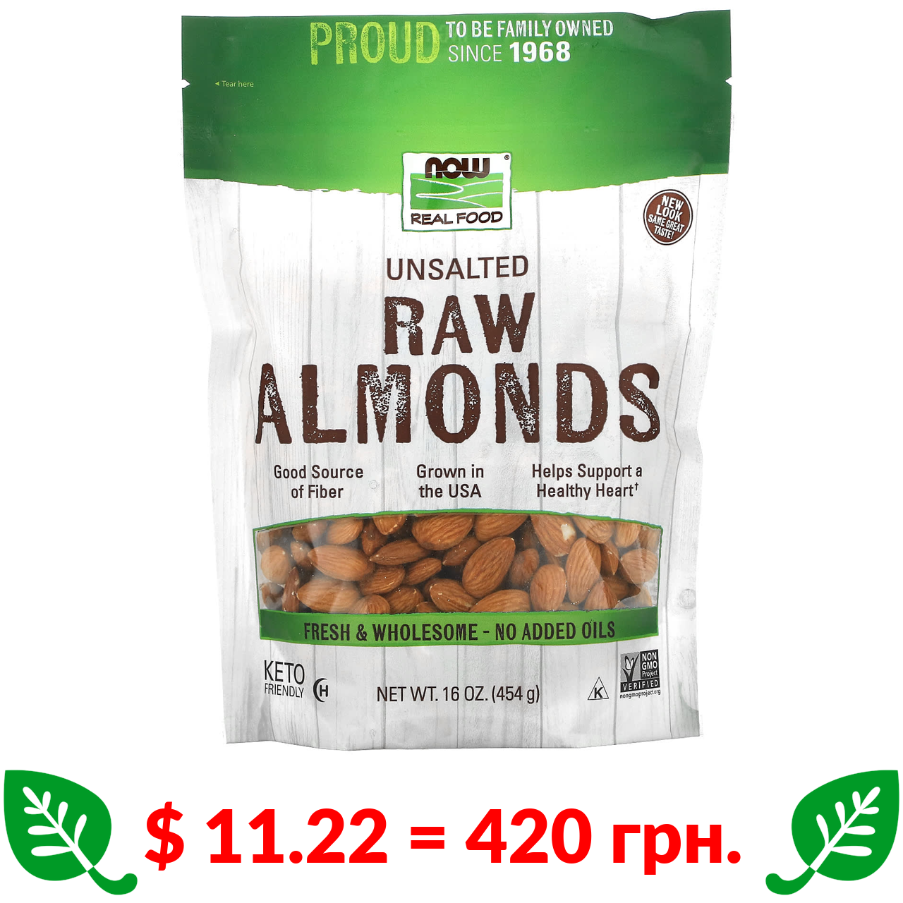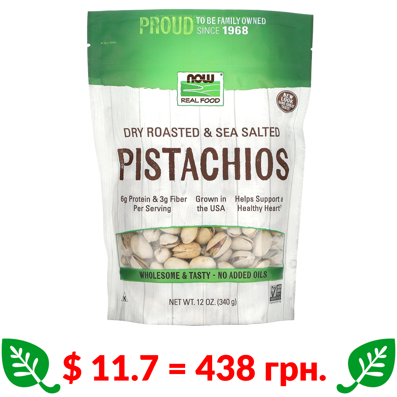 $ 11.7 = 438 грн. Now Foods, Real Food, фісташки сухого обсмажування з морською сіллю, 340 г (12 унцій)