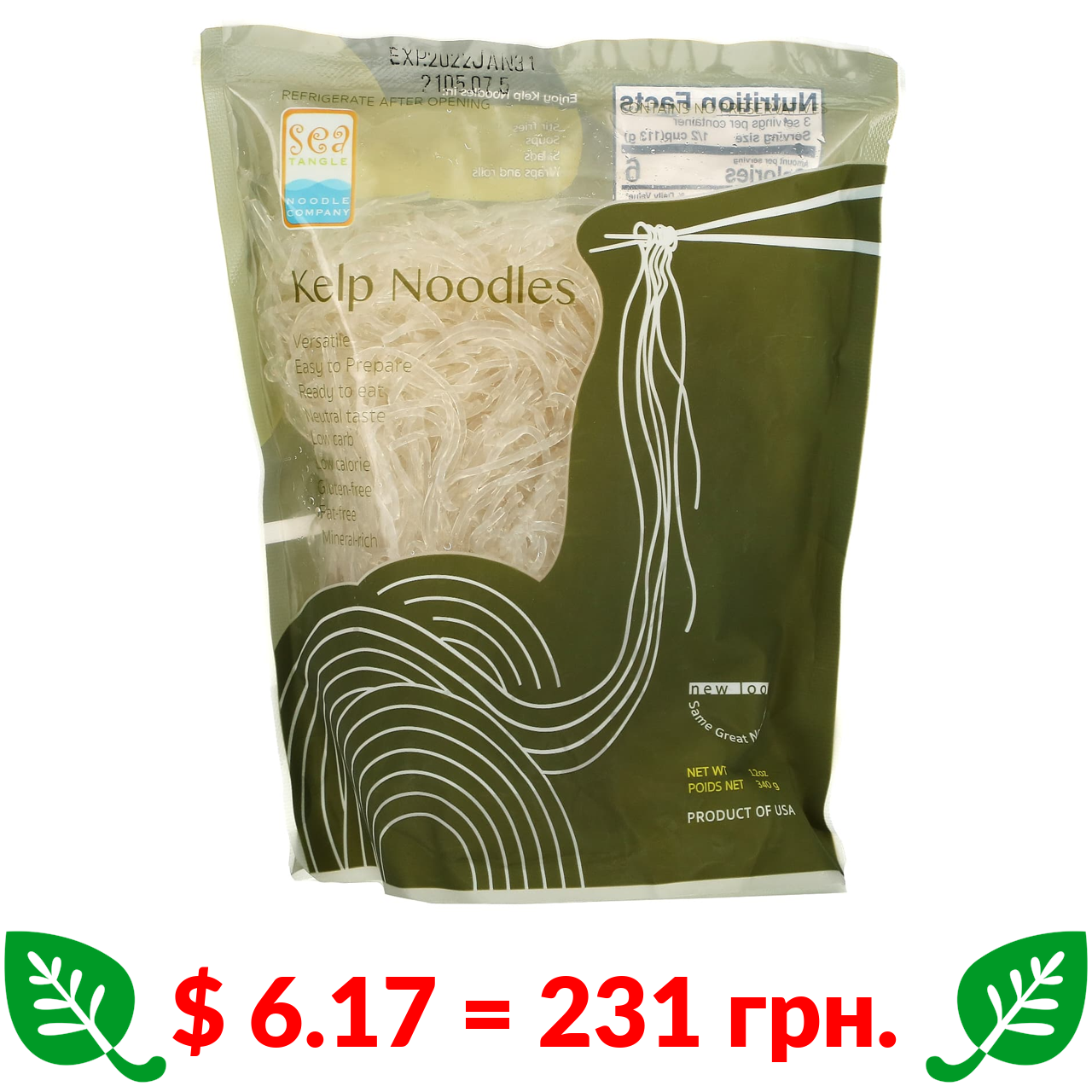 $ 6.17 = 231 грн. Sea Tangle Noodle Company, локшина з бурих водоростей, 340 г (12 унцій)