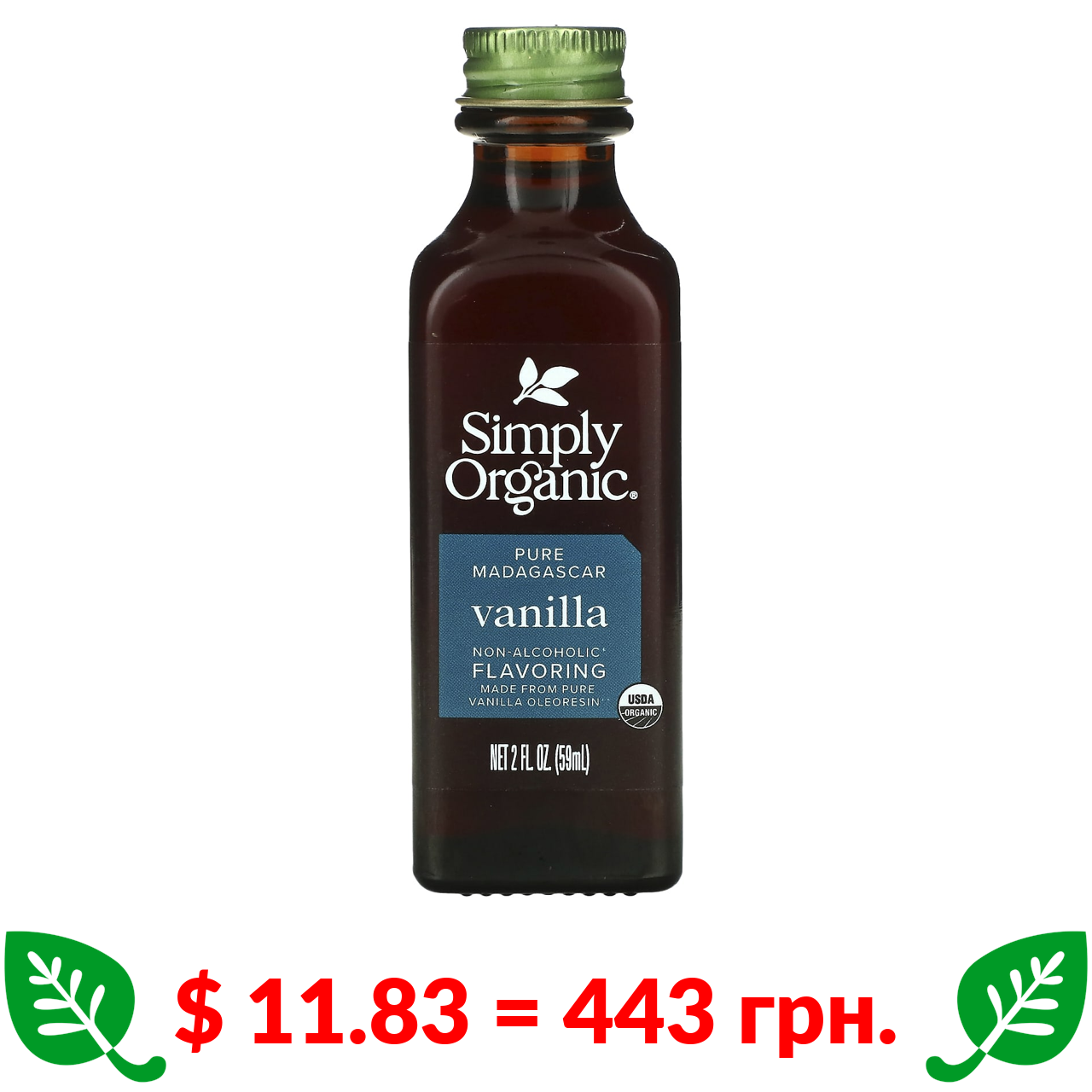 $ 11.83 = 443 грн. Simply Organic, мадагаскарська ваніль, ароматизатор без спирту, вирощена на фермі, 59 мл (2 рідк. унції)