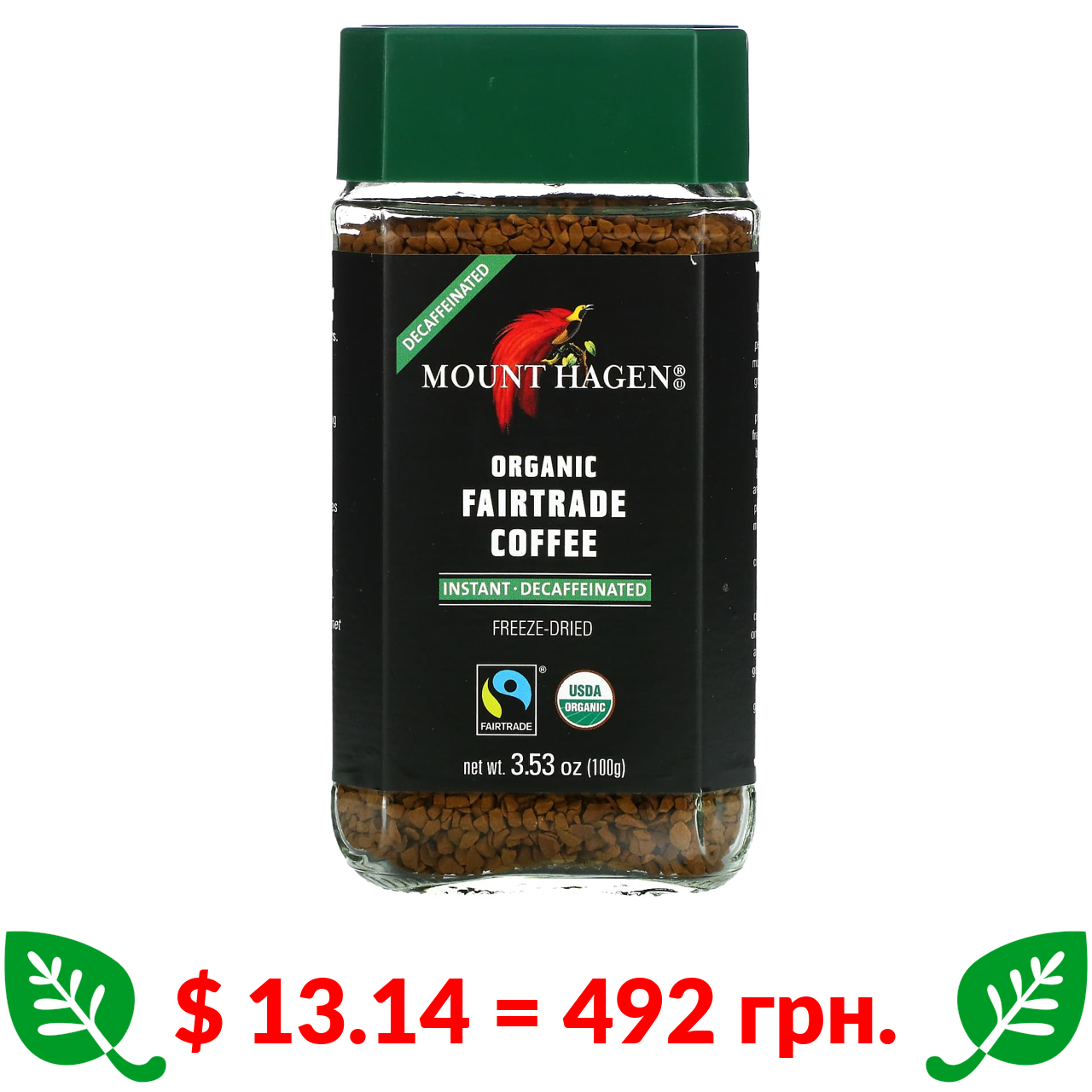$ 13.14 = 492 грн. Mount Hagen, органічна кава, вироблена з дотриманням принципів справедливої торгівлі, розчинна, без кофеїну, 100 г (3,53 унції)