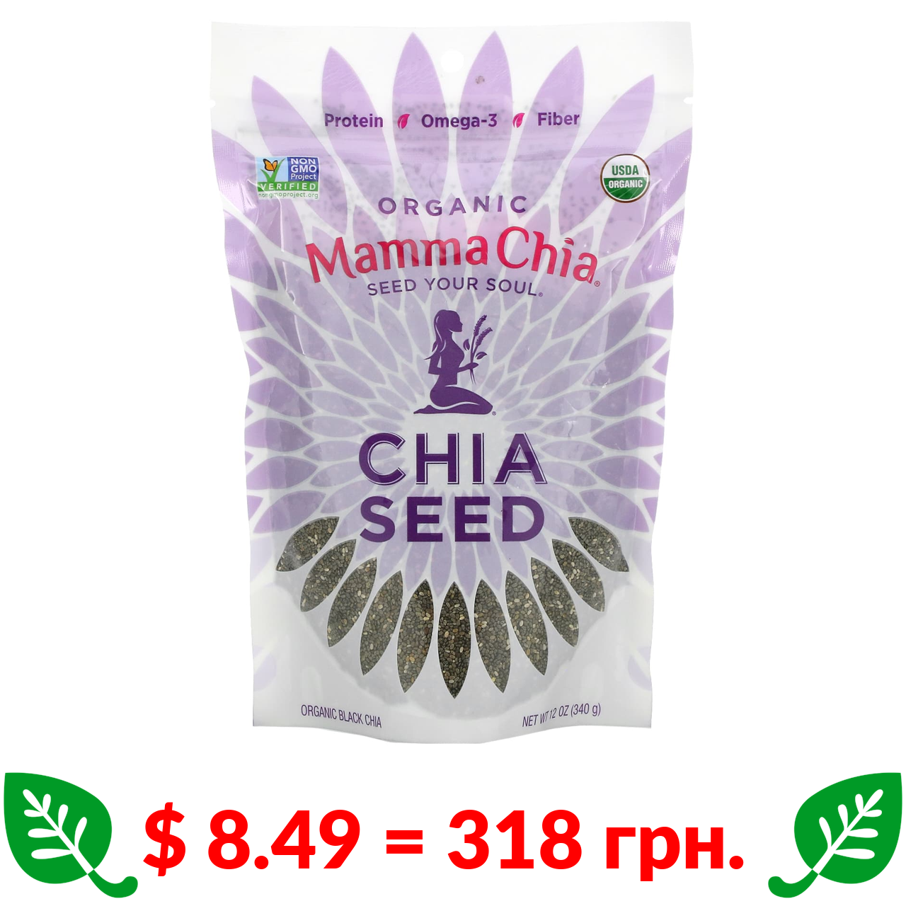$ 8.49 = 318 грн. Mamma Chia, органічне насіння чіа, 340 г (12 унцій)