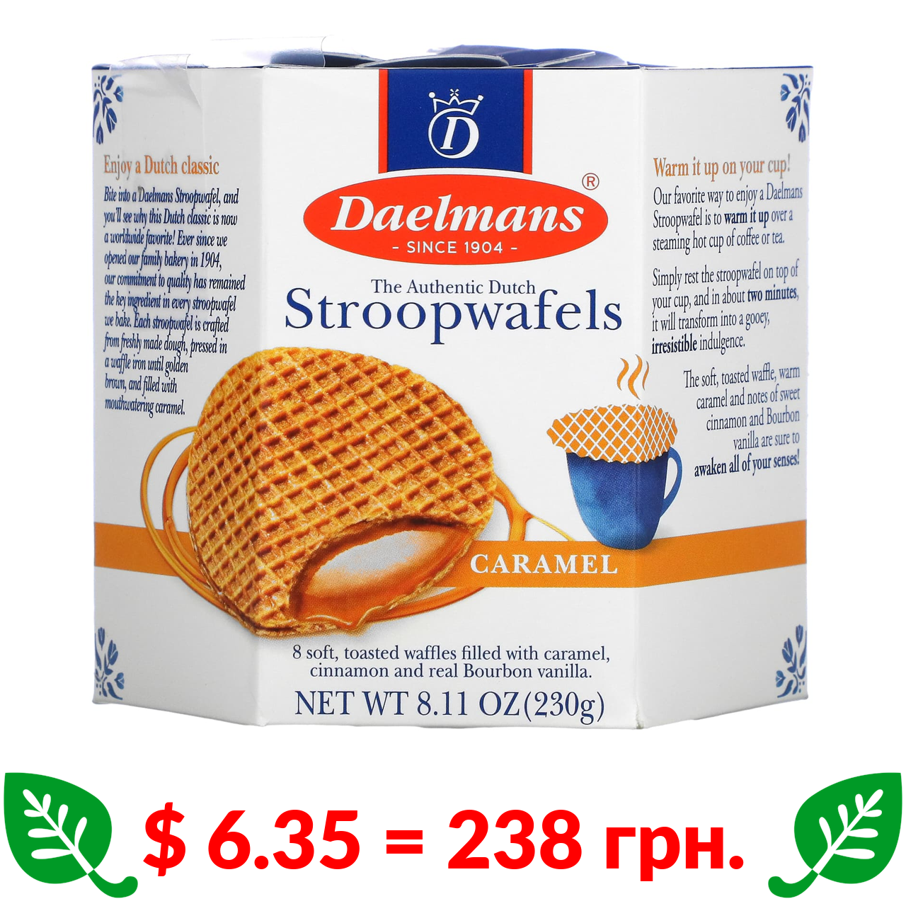 $ 6.35 = 238 грн. Daelmans, круглі вафлі-сендвічі з карамельним прошарком, карамель, 8 вафель по 230 г (8,11 унції)