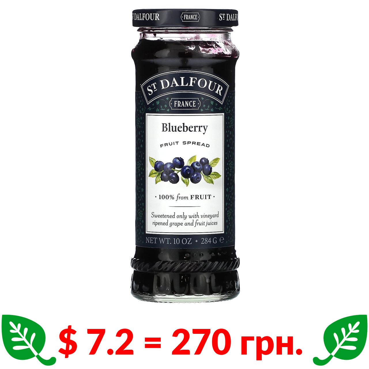 $ 7.2 = 270 грн. St. Dalfour, чорничний джем, 284 г (10 унцій)