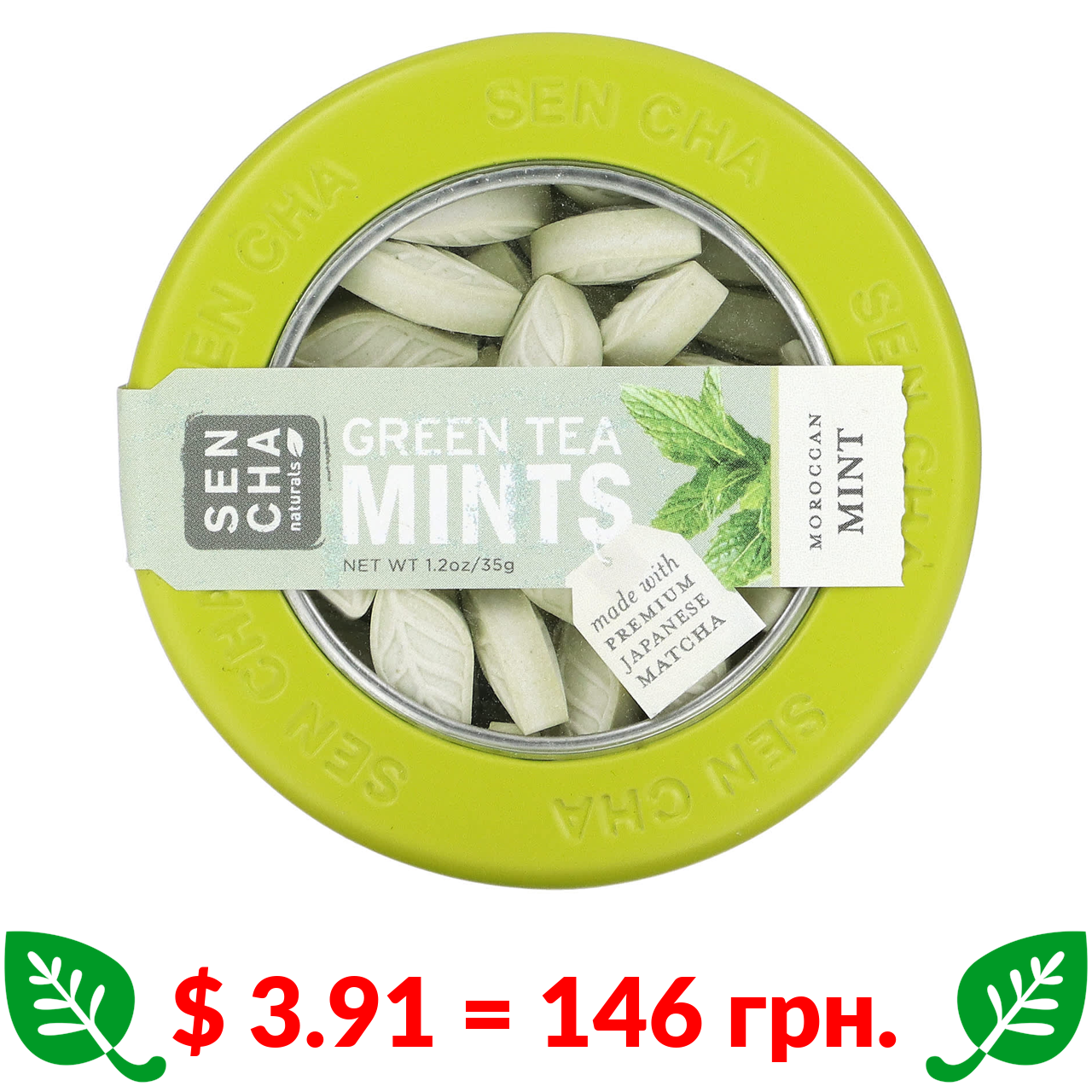 $ 3.91 = 146 грн. Sencha Naturals, льодяники із зеленим чаєм, марокканська м’ята, 35 г (1,2 унції)