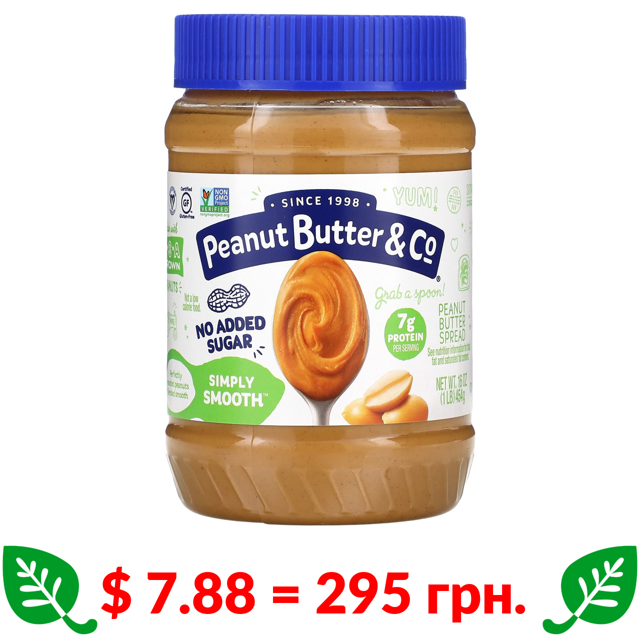 $ 7.88 = 295 грн. Peanut Butter & Co., Simply Smooth, арахісова паста, без додавання цукру, 454 г (16 унцій)