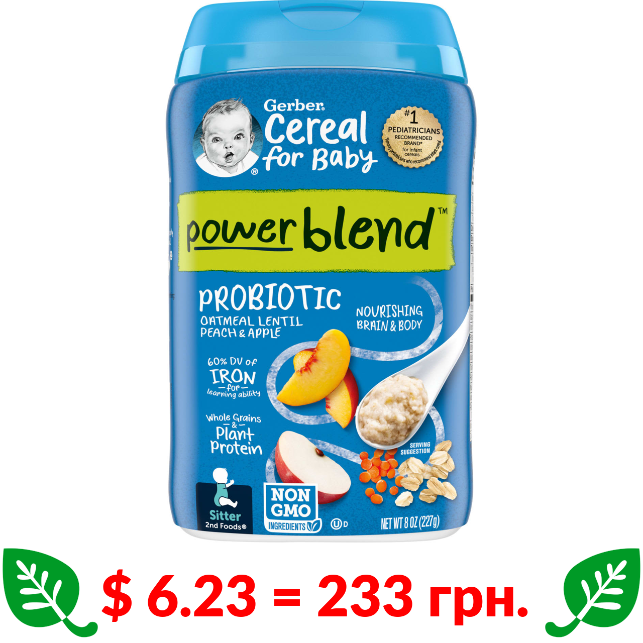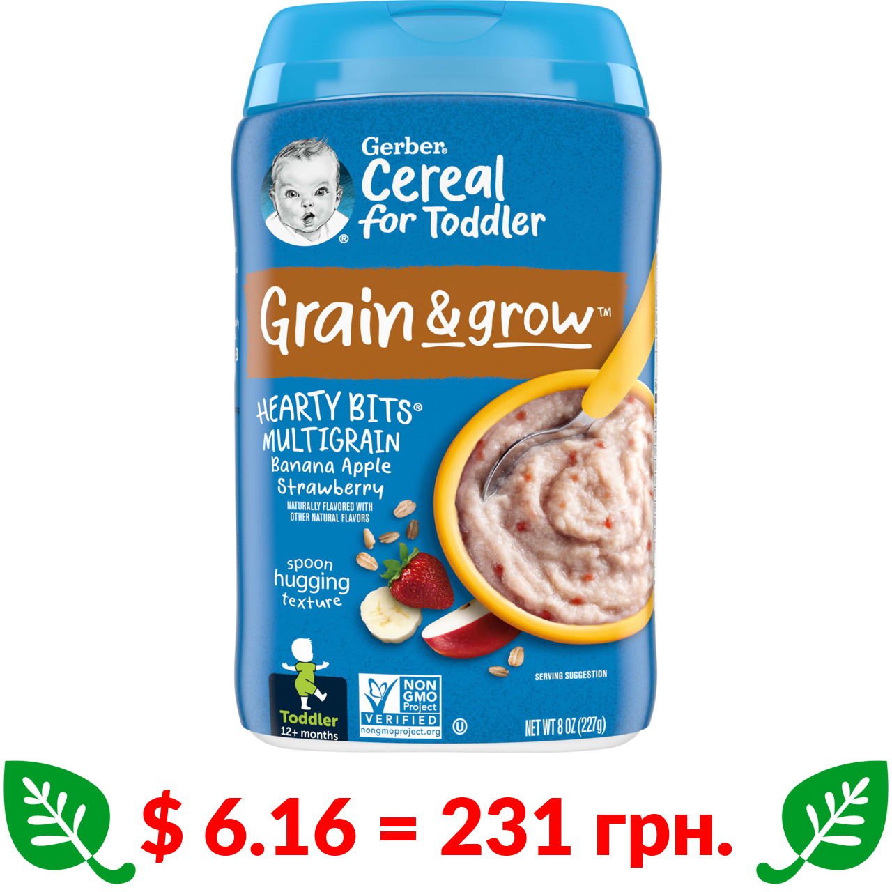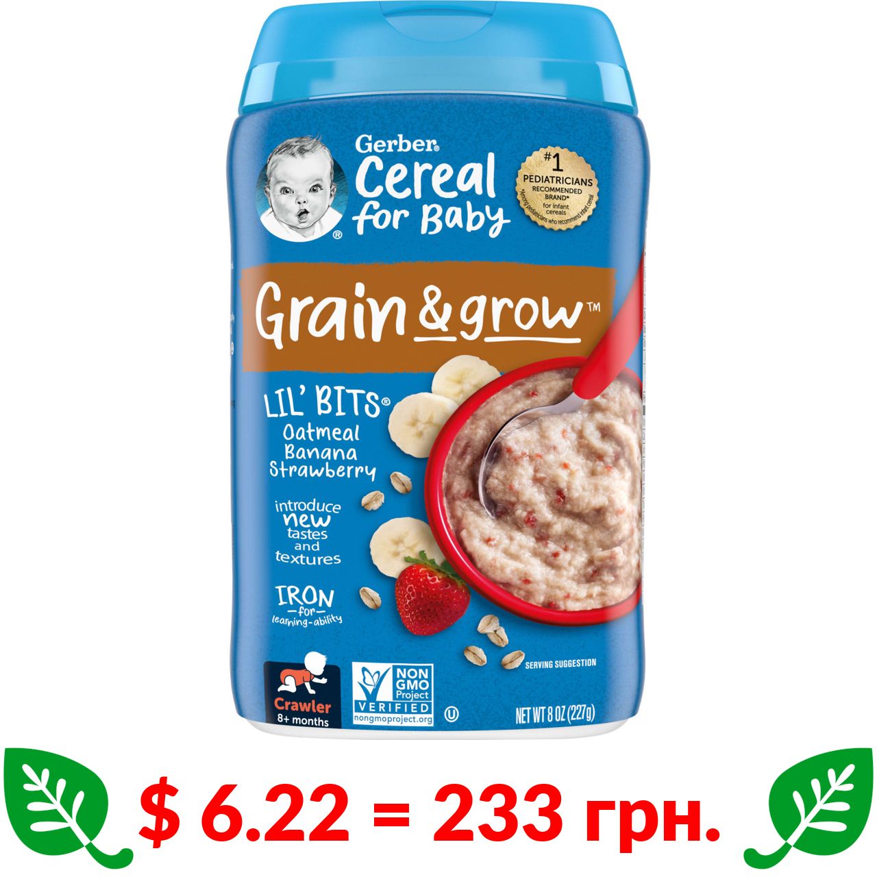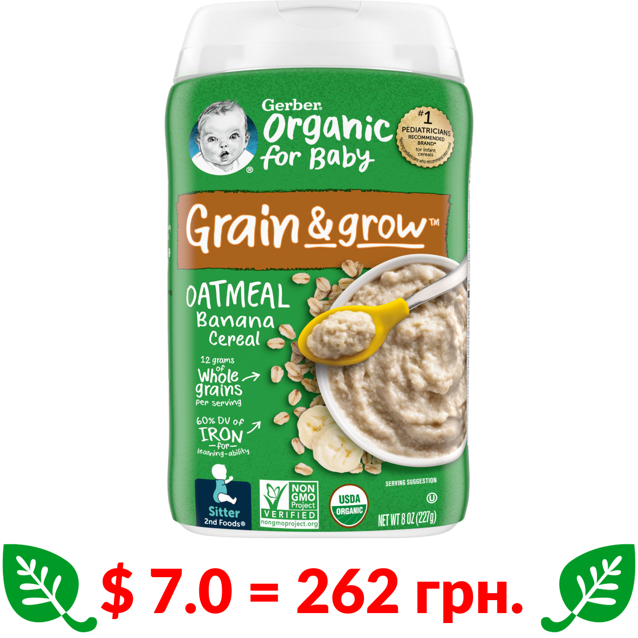 $ 7.0 = 262 грн. Gerber, органічна вівсяна каша з бананом, 227 г (8 унцій)