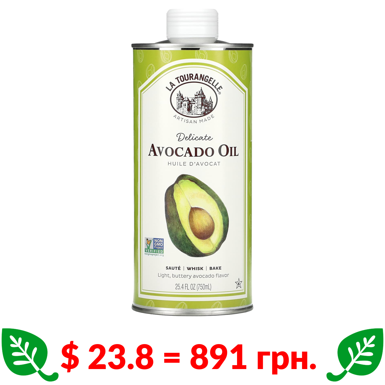 $ 23.8 = 891 грн. La Tourangelle, преміальне масло авокадо, 750 мл (25,4 рідк. унцій)
