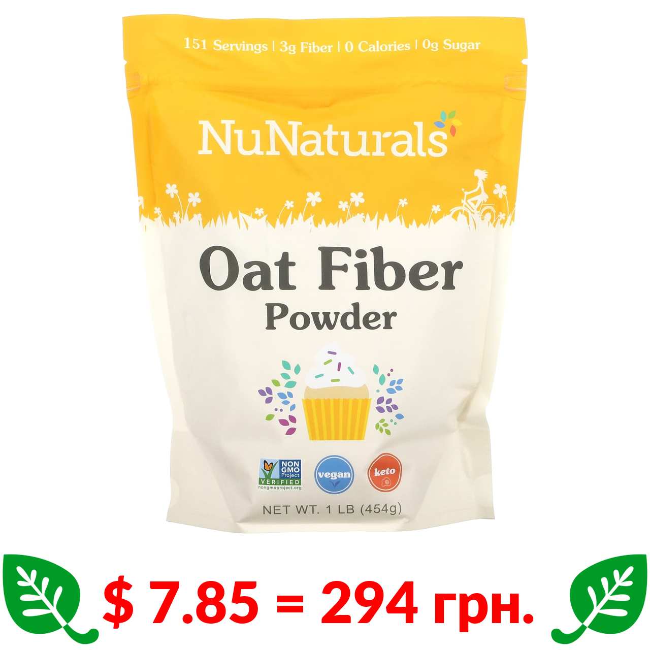 $ 7.85 = 294 грн. NuNaturals, вівсяна клітковина, 454 г (1 фунт)