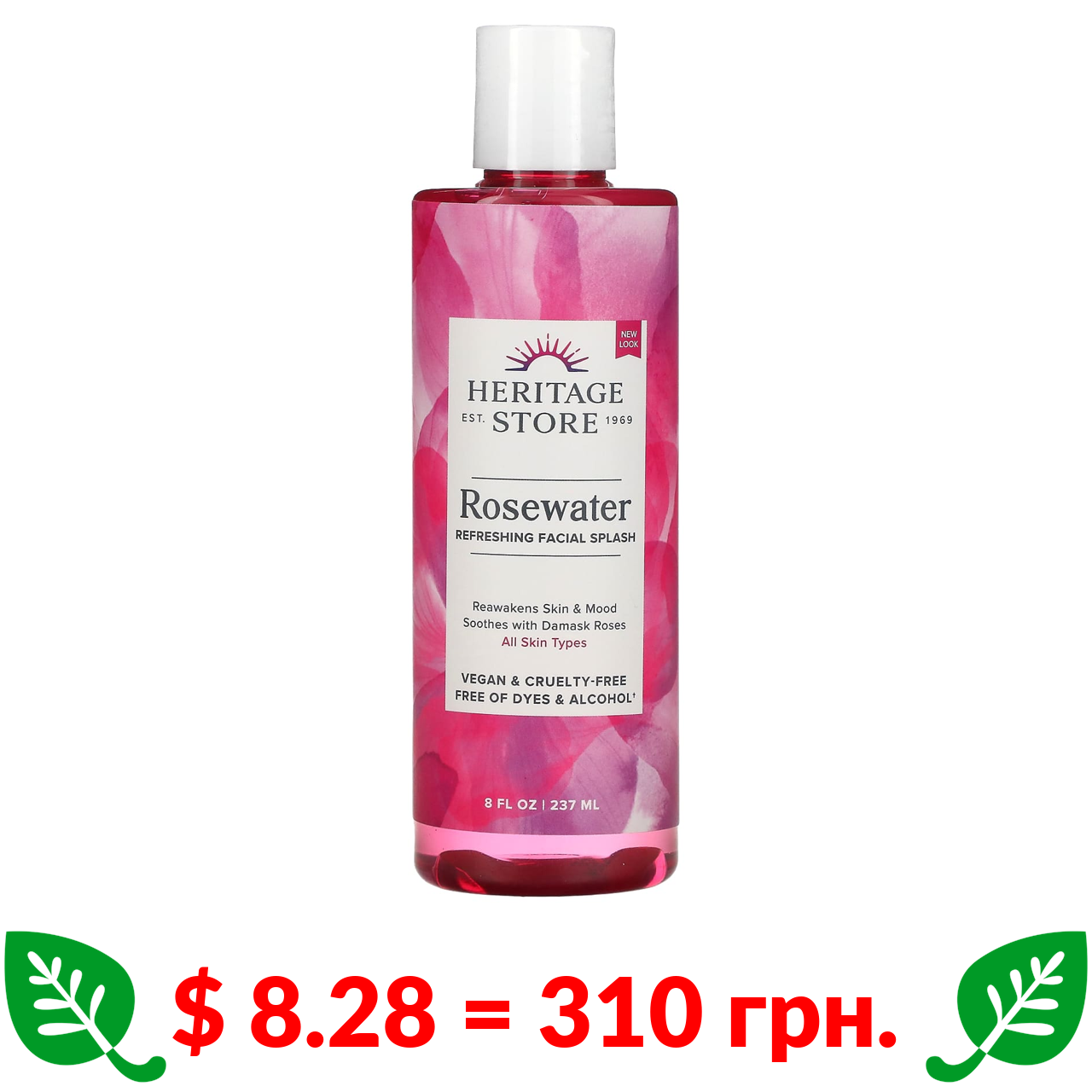 $ 8.28 = 310 грн. Heritage Store, трояндова вода, освіжаючий засіб для обличчя, 237 мл (8 рідк. унцій)