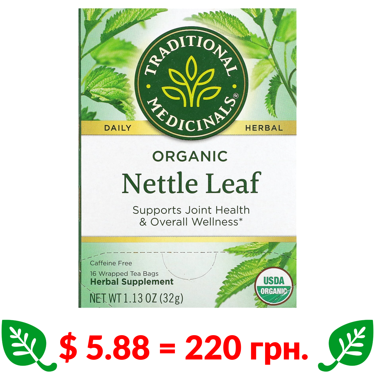$ 5.88 = 220 грн. Traditional Medicinals, Organic Nettle Leaf, Caffeine Free, 16 Wrapped Tea Bags, 0.07 oz (2 g) Each