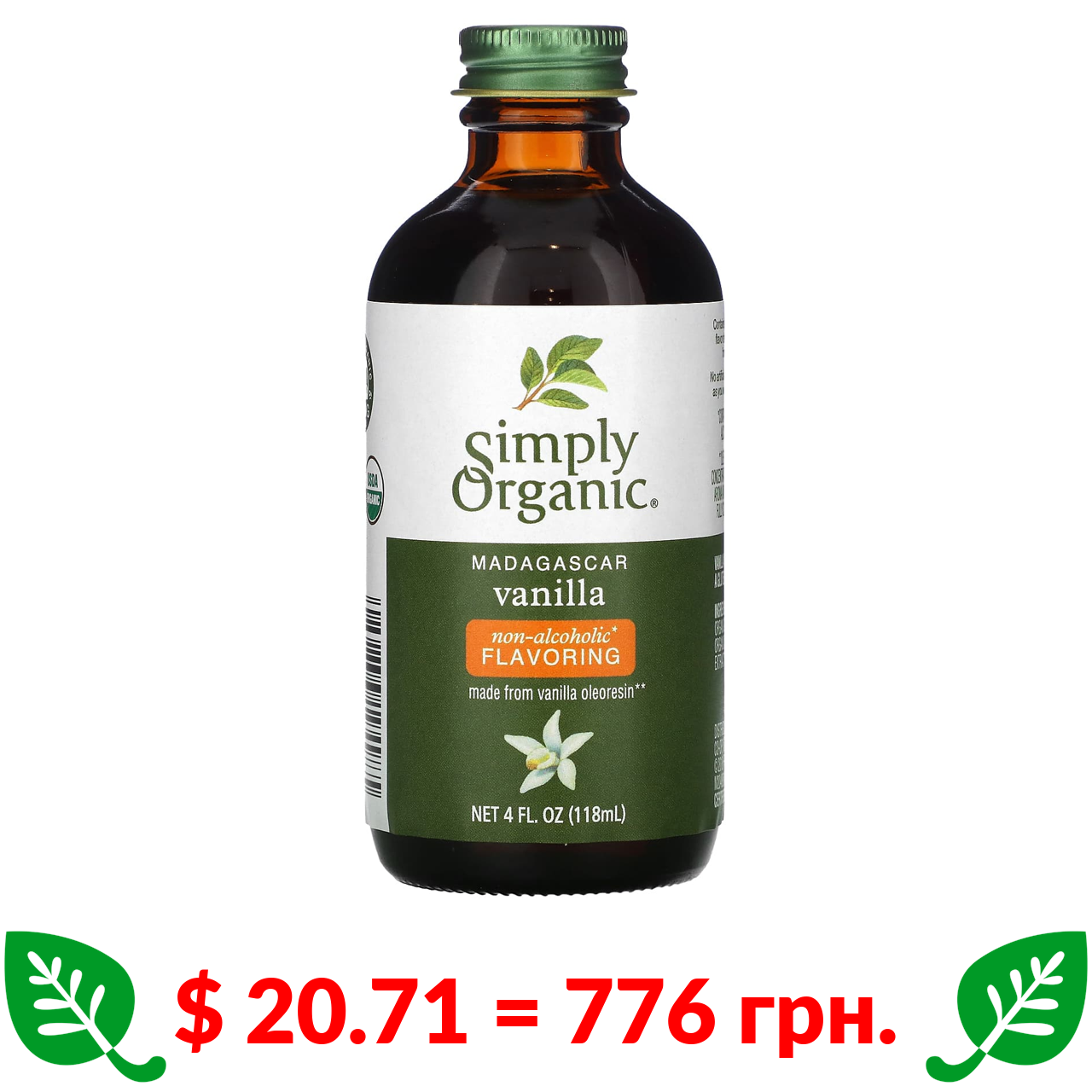 $ 20.71 = 776 грн. Simply Organic, мадагаскарська ваніль, ароматизатор без спирту, вирощена на фермі, 118 мл (4 рідк. унції)