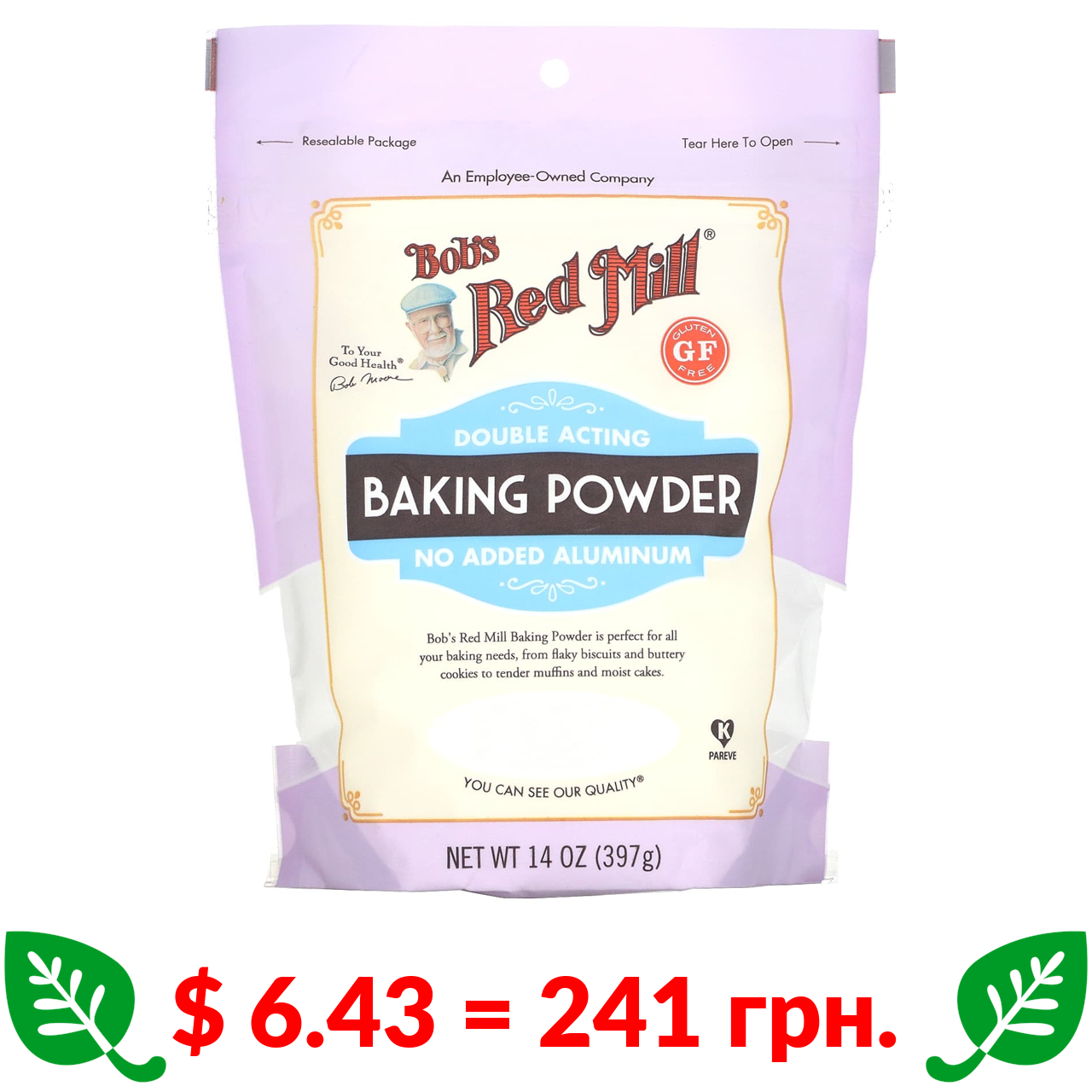 $ 5.98 = 224 грн. Bob’s Red Mill, харчова сода, без глютену, 454 г (16 унцій)