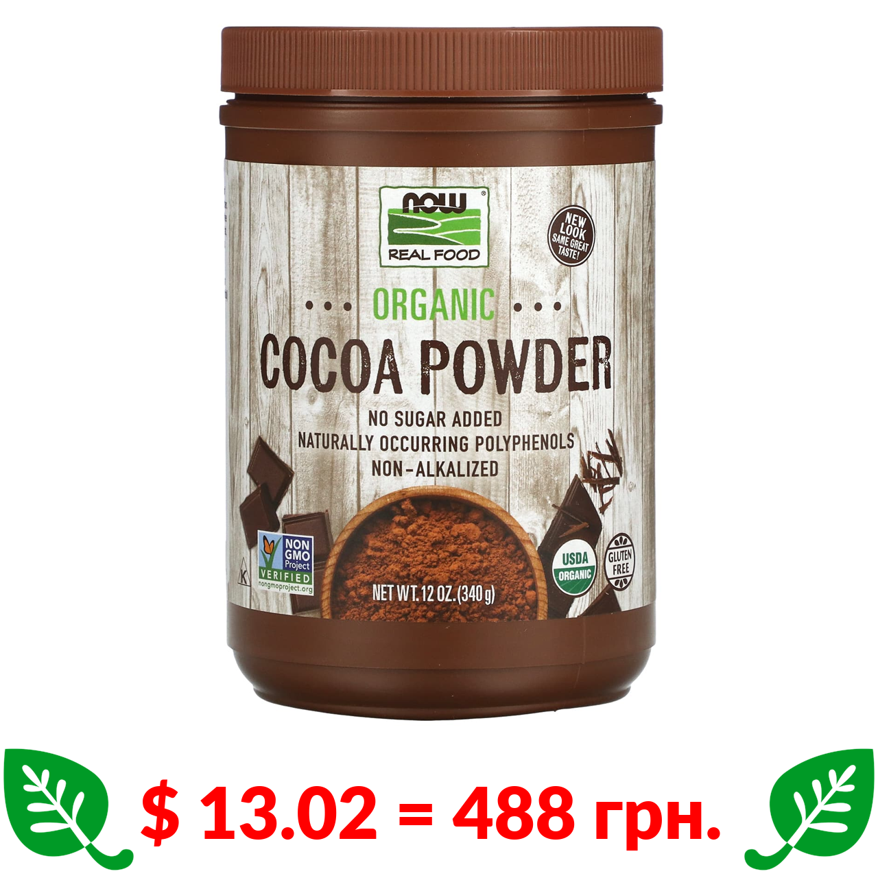 $ 13.02 = 488 грн. Now Foods, Real food, Cocoa Lovers, органічний порошок какао, 340 г (12 унцій)