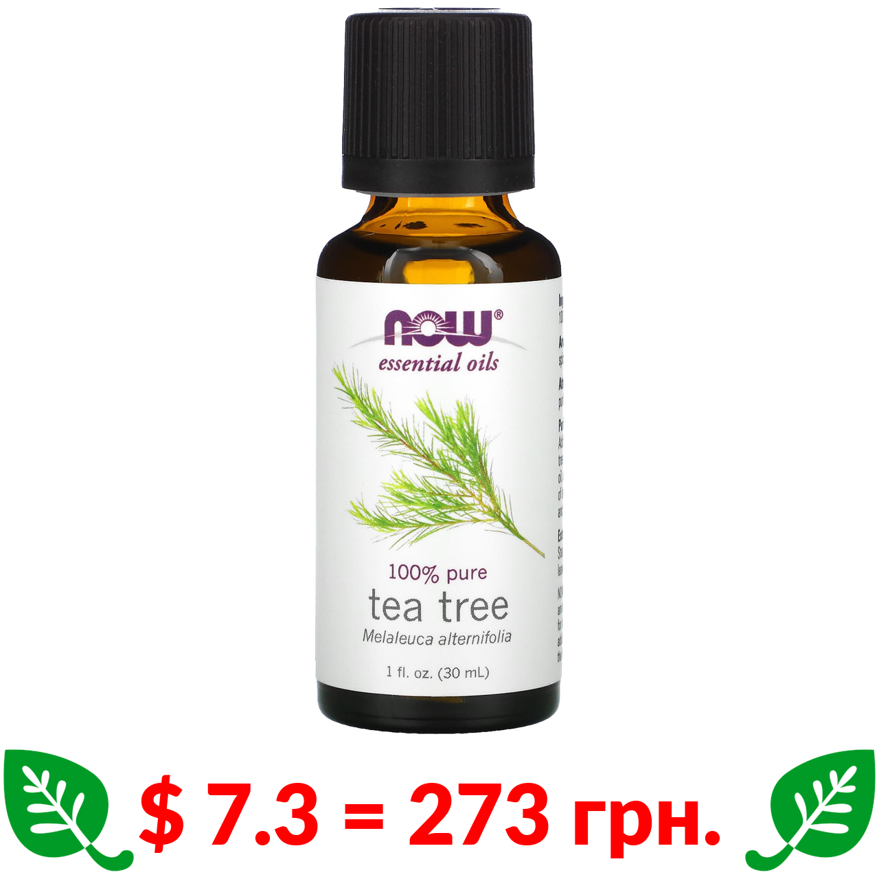 $ 7.3 = 273 грн. Now Foods, ефірна олія, чайне дерево, 30 мл (1 рідк. унція)