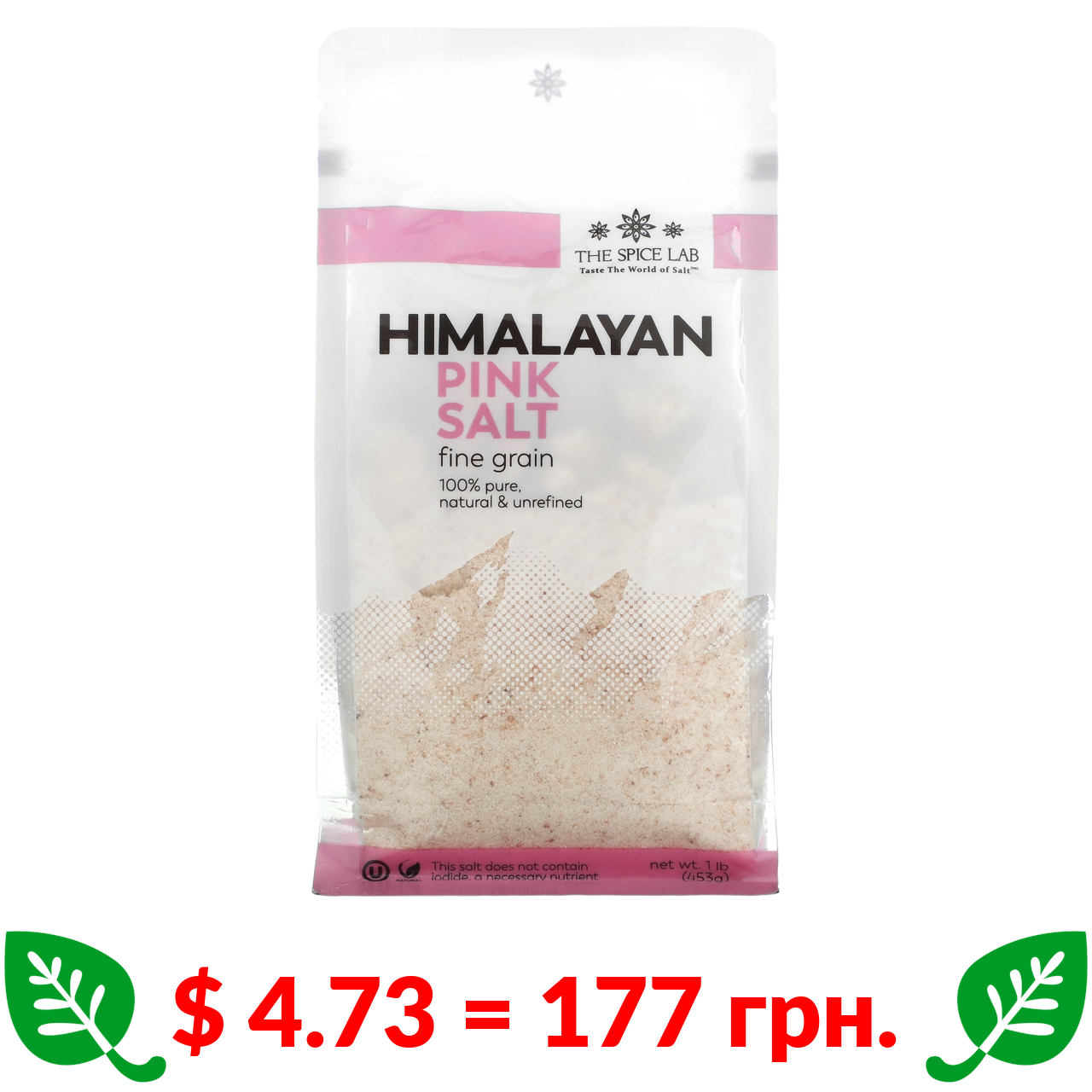 $ 4.73 = 177 грн. The Spice Lab, рожева гімалайська сіль, дрібна, 453 г (1 фунт)