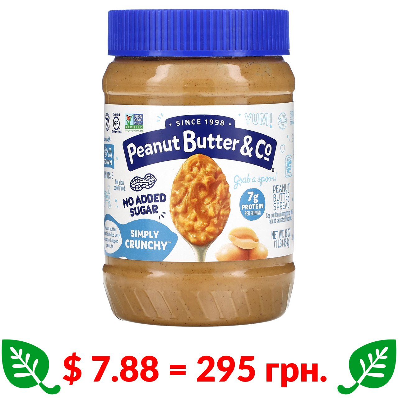 $ 7.88 = 295 грн. Peanut Butter & Co., Simply Crunchy, арахісова паста, без доданого цукру, 454 г (16 унцій)