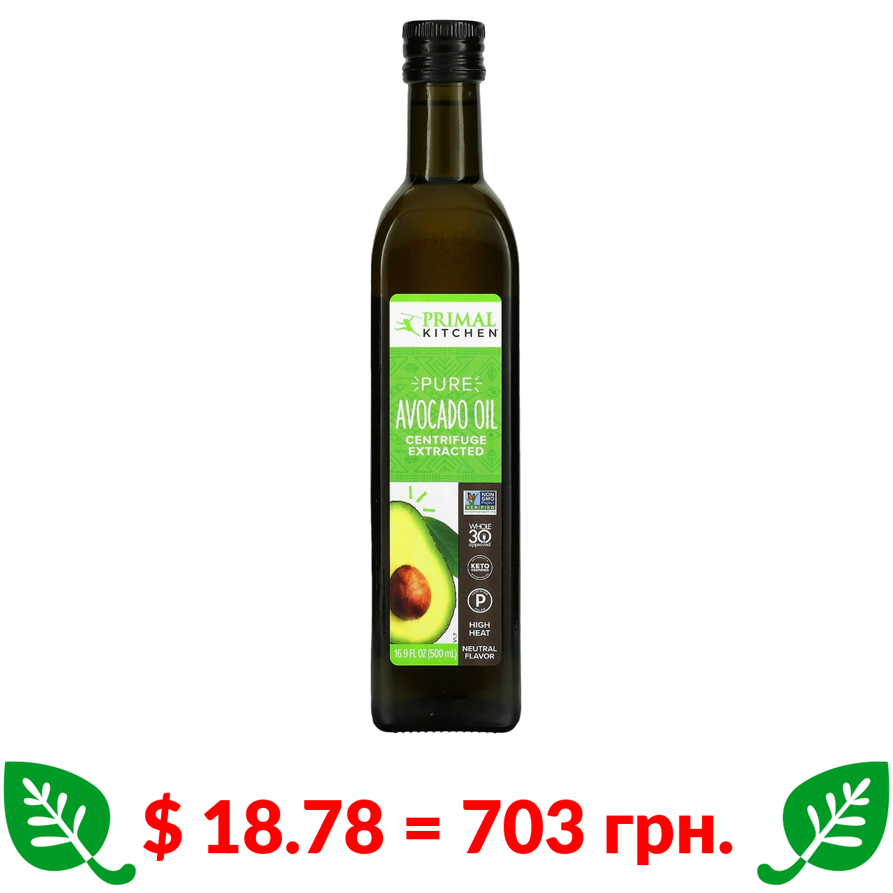$ 18.78 = 703 грн. Primal Kitchen, олія авокадо, 500 мл (16,9 рідк. унції)