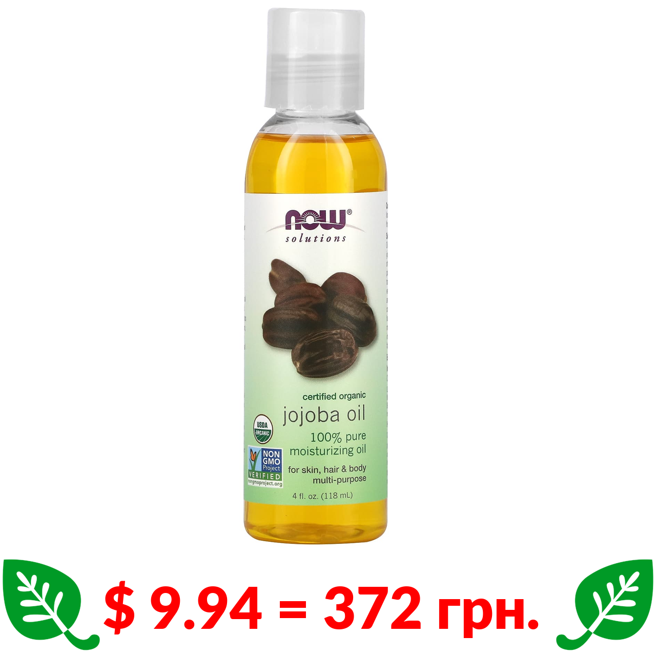 $ 9.94 = 372 грн. Now Foods, Solutions, сертифікована органічна олія жожоба, 118 мл (4 рідк. унції)
