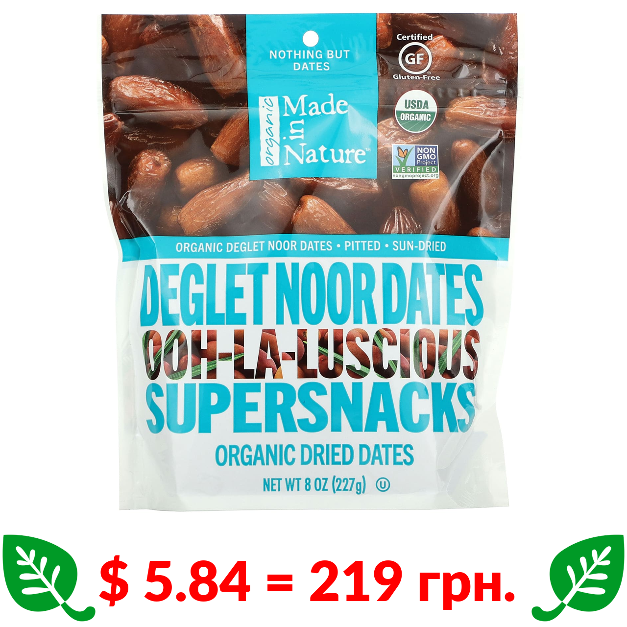 $ 5.84 = 219 грн. Made in Nature, Ooh-La-Luscious, органічні сушені фініки, суперснекі Deglet Noor, 227 г (8 унцій)