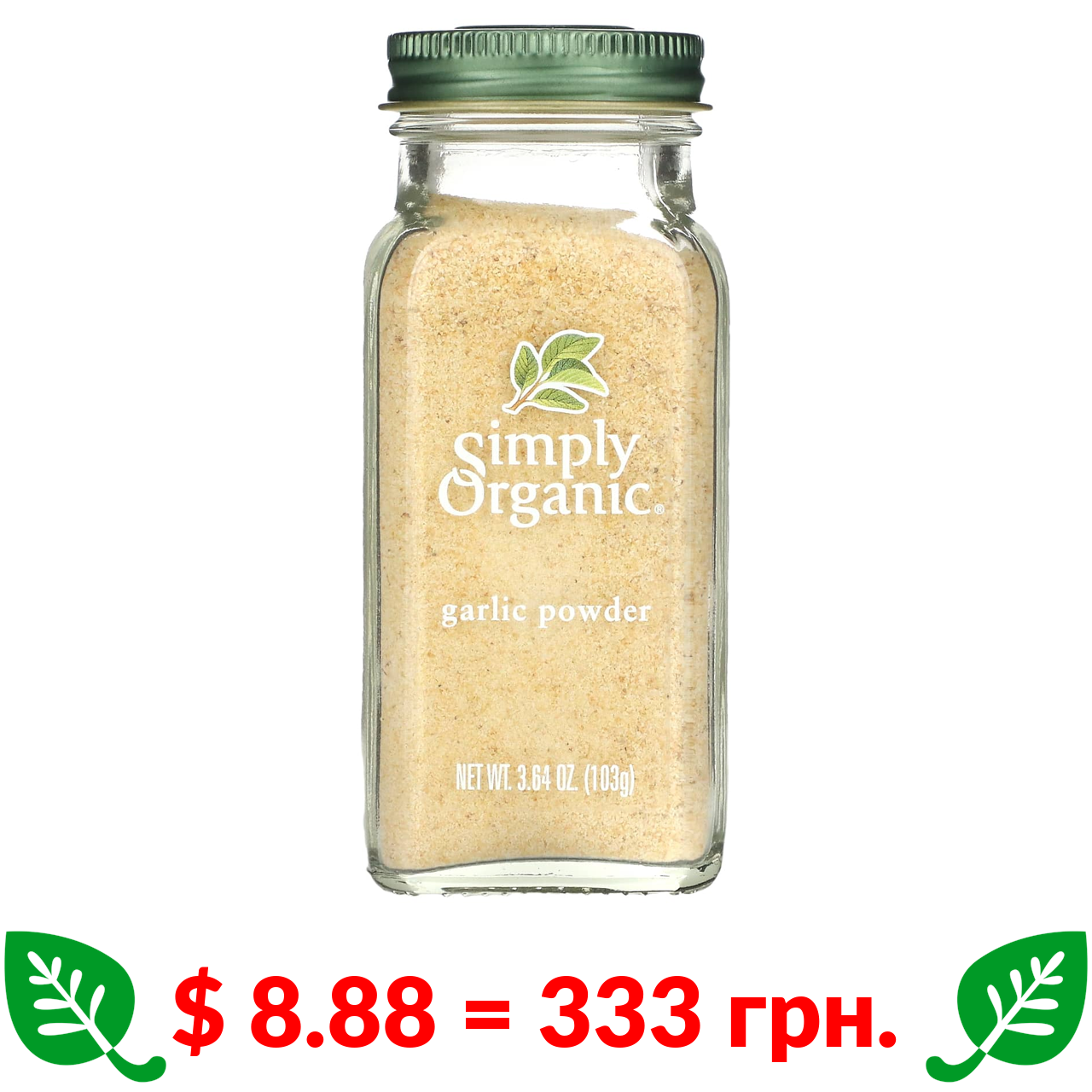 $ 8.88 = 333 грн. Simply Organic, часник у формі порошку, 103 г (3,64 унції)