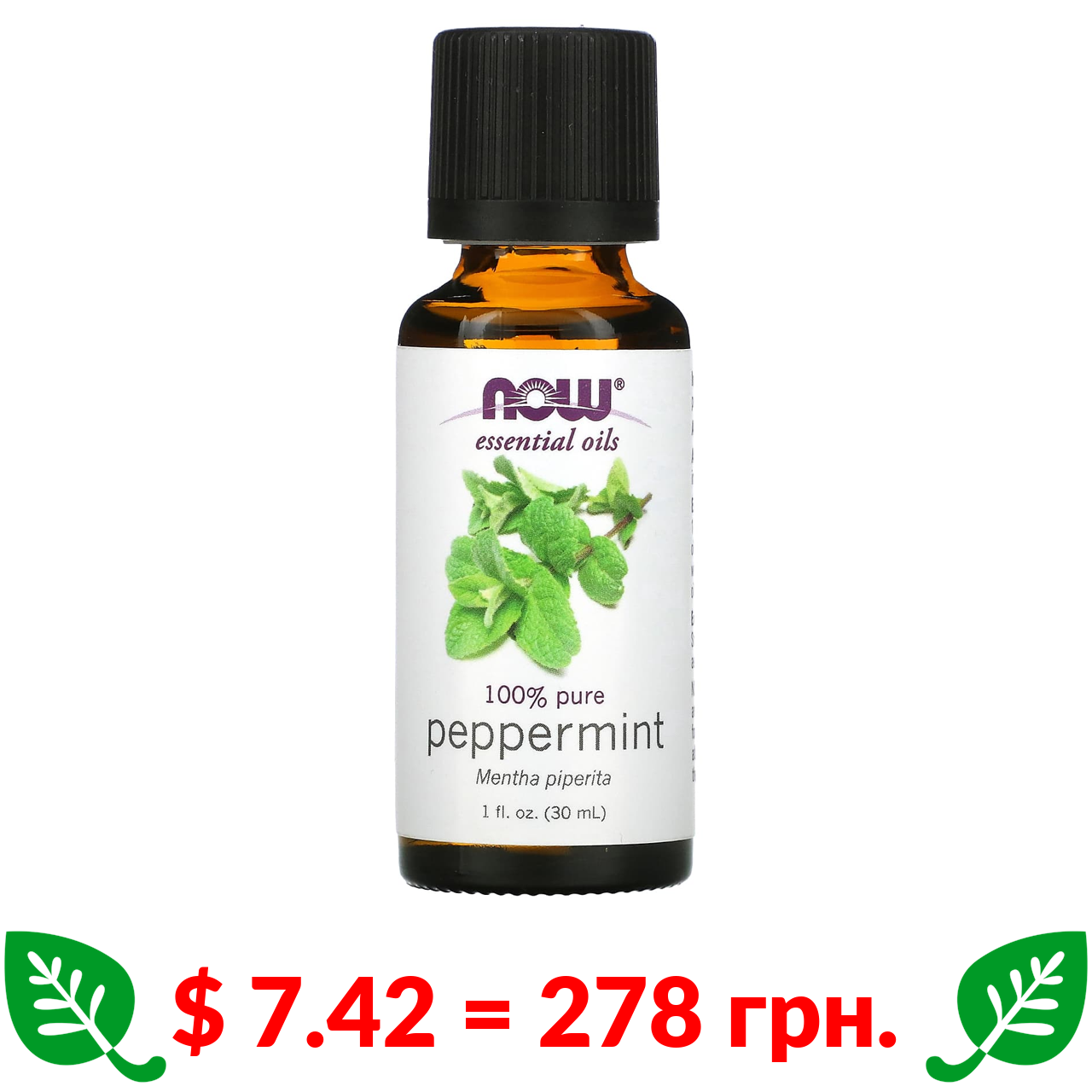 $ 7.42 = 278 грн. Now Foods, ефірні олії, м’ята перцева, 30 мл (1 рідк. унція)