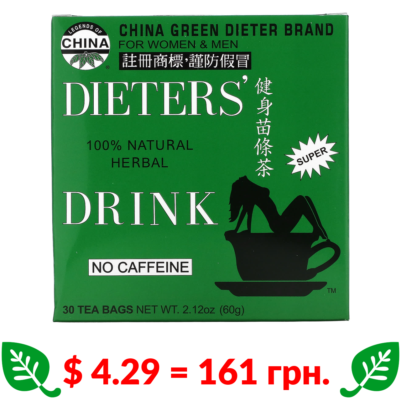 $ 4.29 = 161 грн. Uncle Lee’s Tea, Legends of China, Dieter’s 100% Natural Herbal Drink, No Caffeine, 30 Tea Bags, 2.42 oz (69.g)